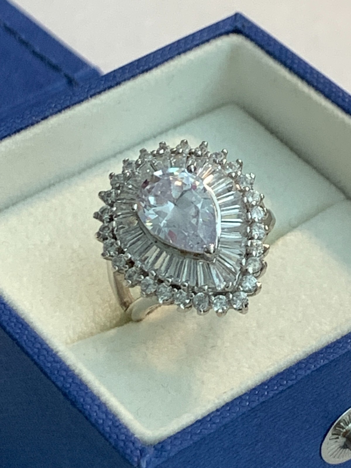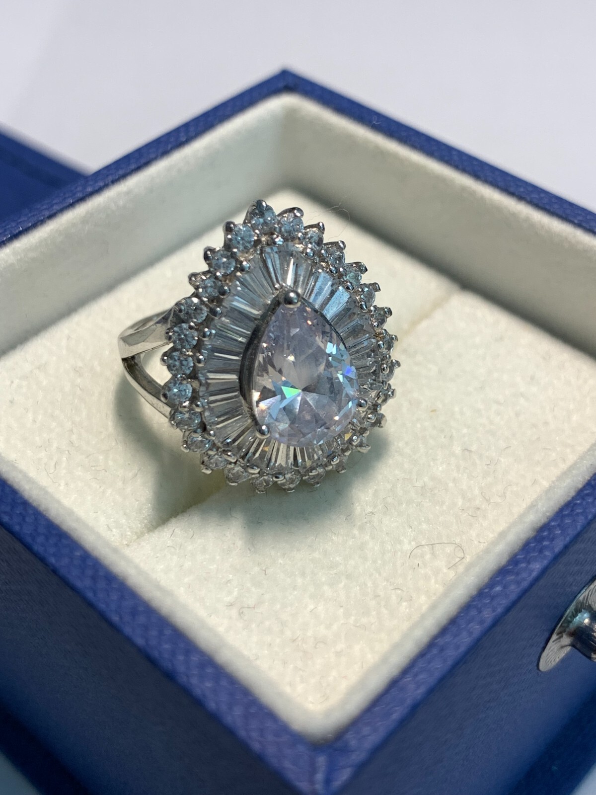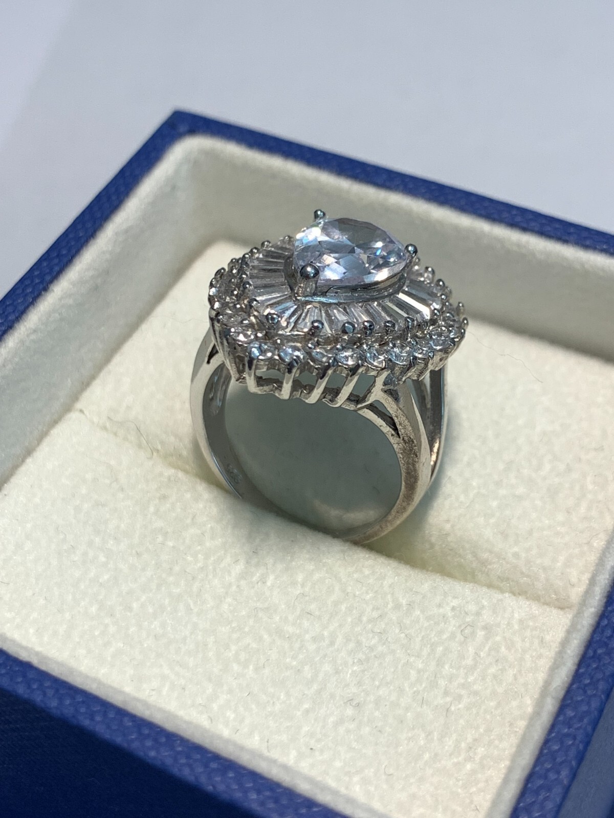как выглядит Vintage Sterling Silver 925 Pear Baguette Glass Crystal Engagement Ring Size 6.5 фото