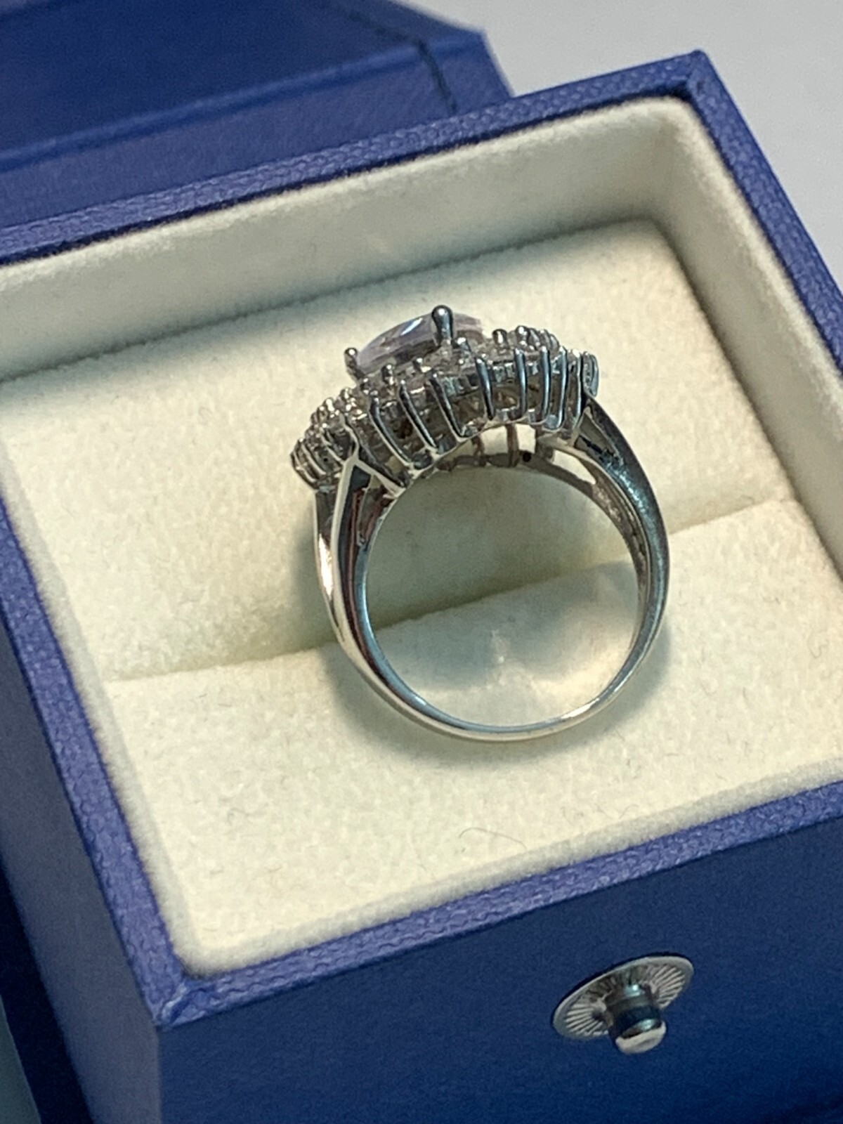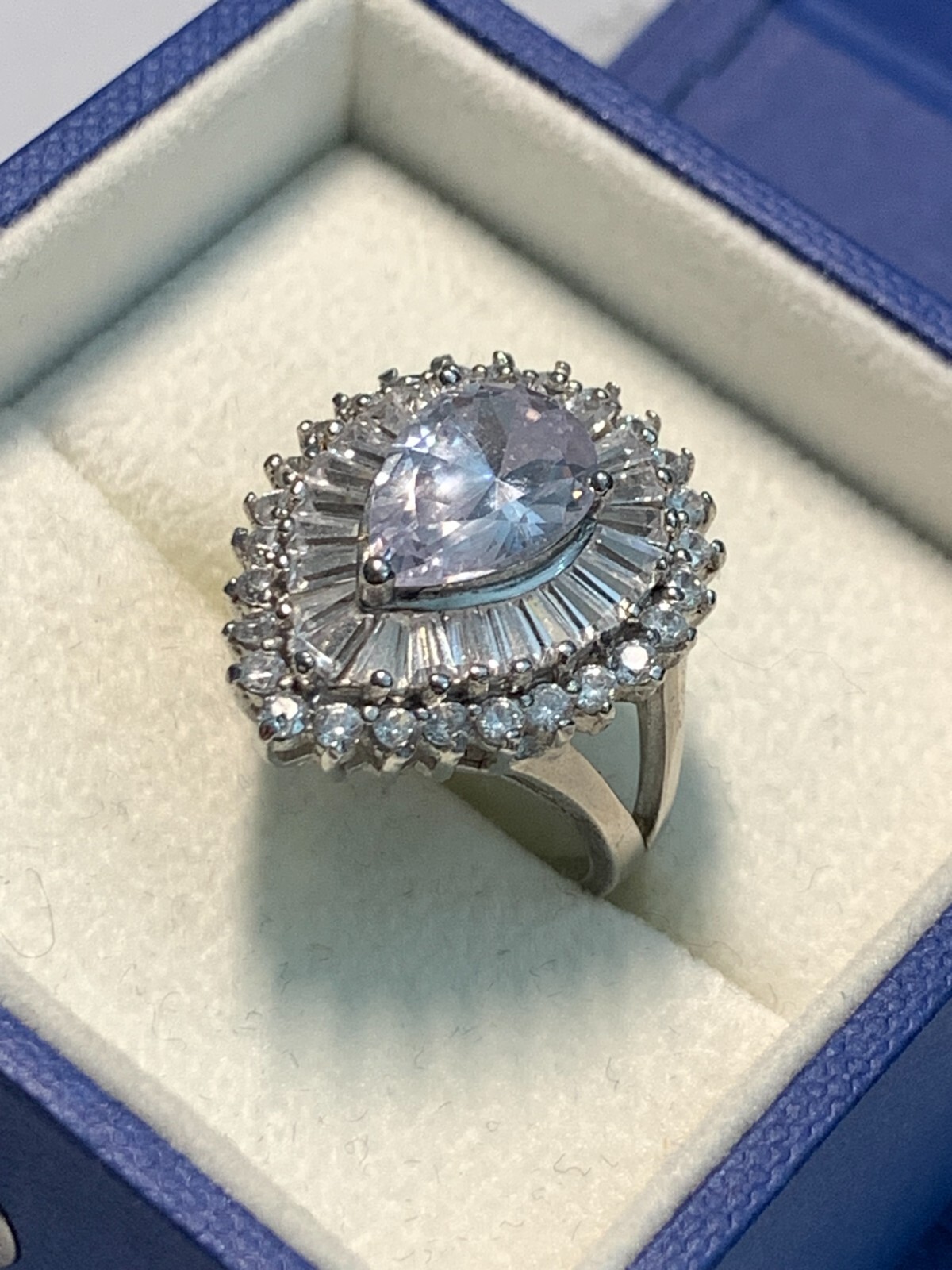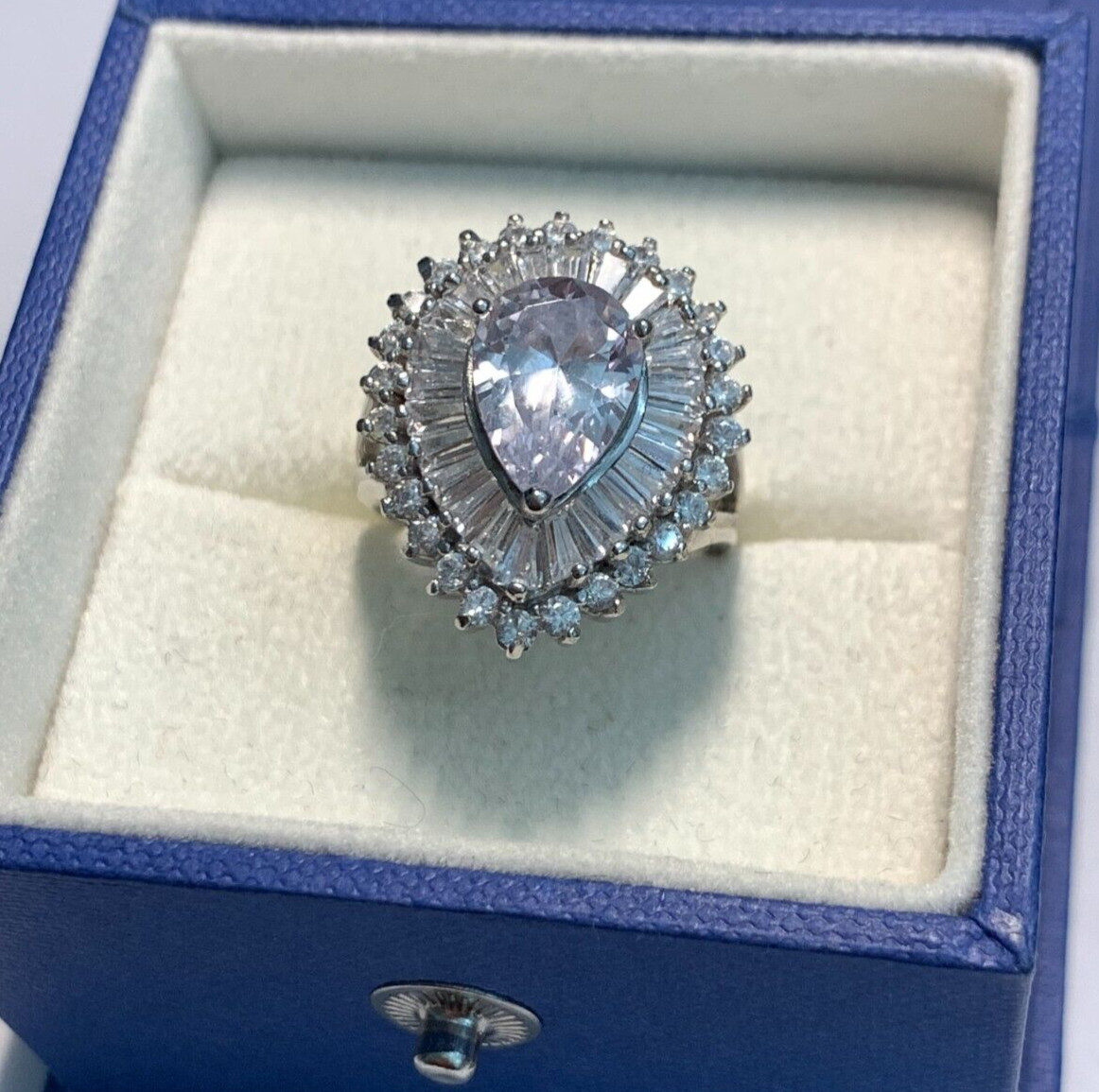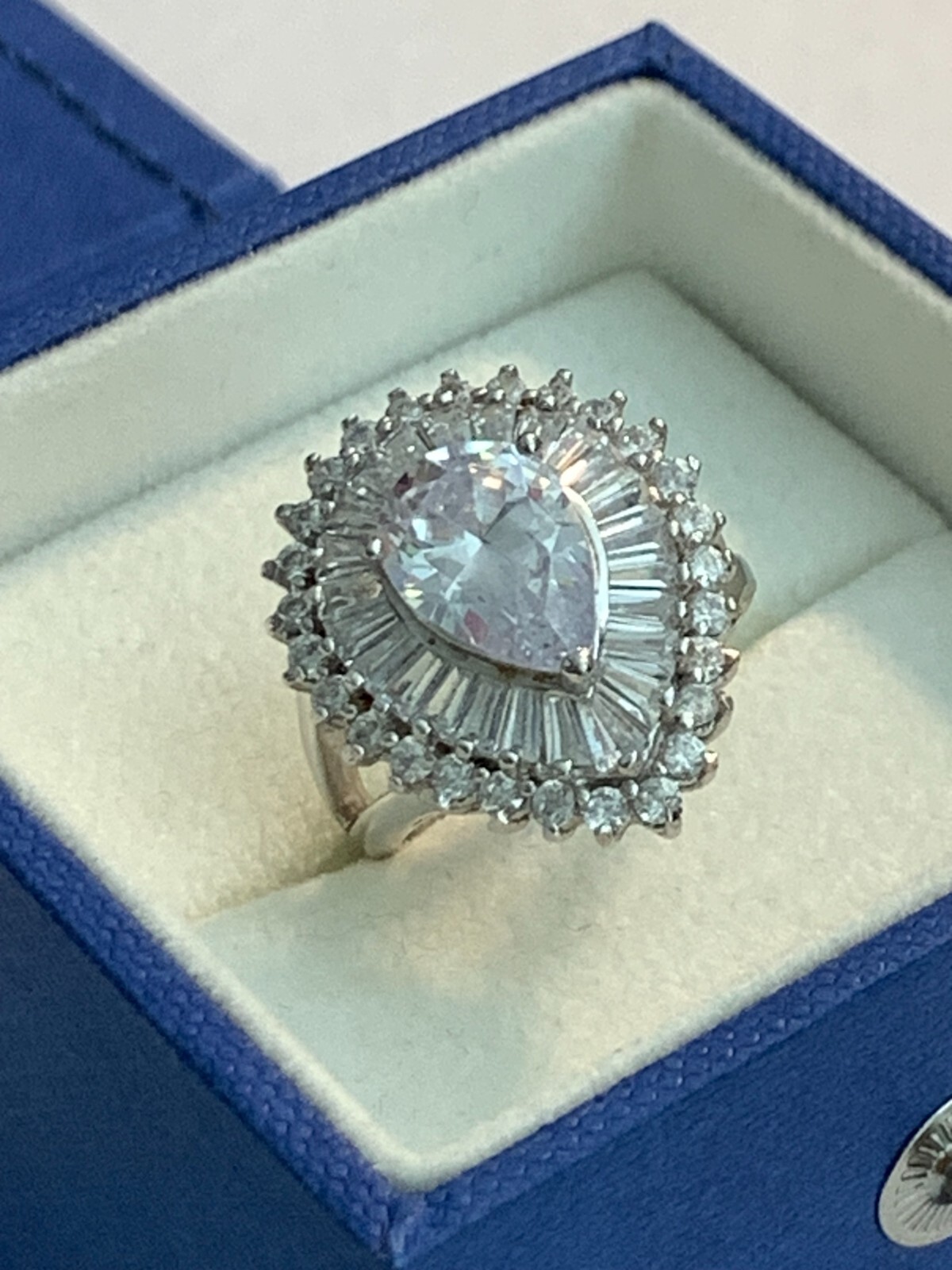 как выглядит Vintage Sterling Silver 925 Pear Baguette Glass Crystal Engagement Ring Size 6.5 фото