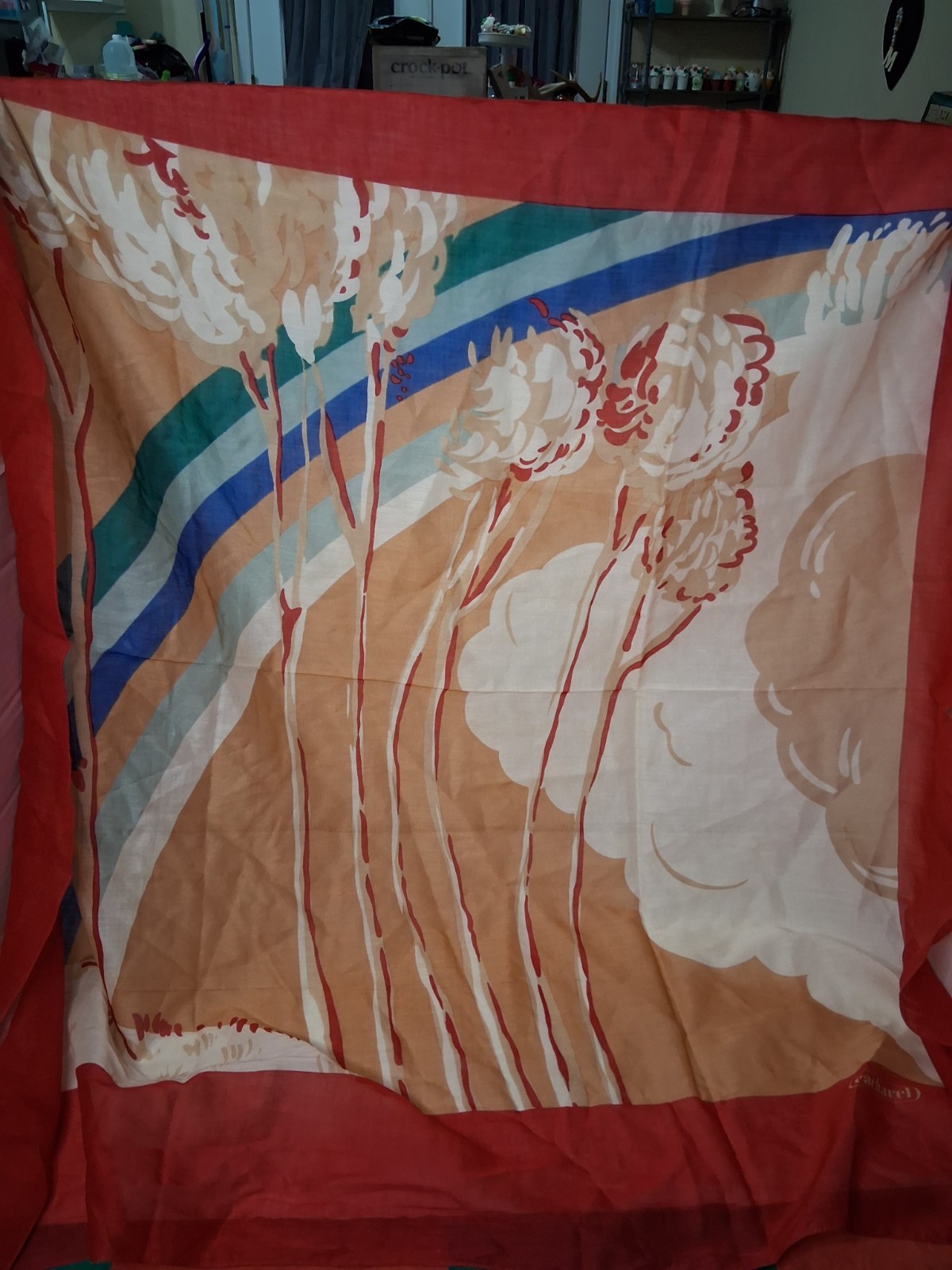 как выглядит VINTAGE Cacharel Red Beige Floral Cotton Scarf Golluber Japan 34 Square фото