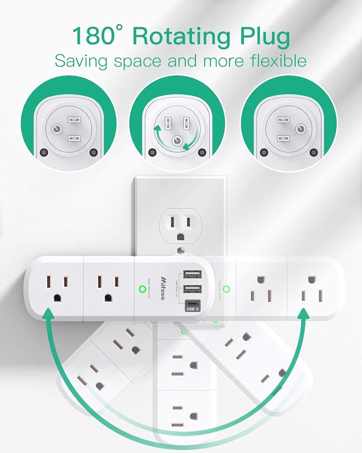 Outlet Extender with Rotating Plug, Surge Protector 6 AC Multi Plug Wall Out...