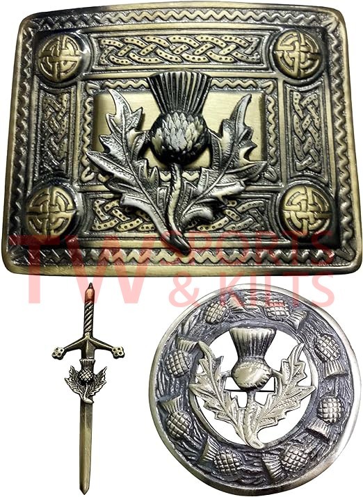 как выглядит Scottish Outfit Irish Green Tartan Kilt Set - 07 Pieces Kilt Accessories for Men фото