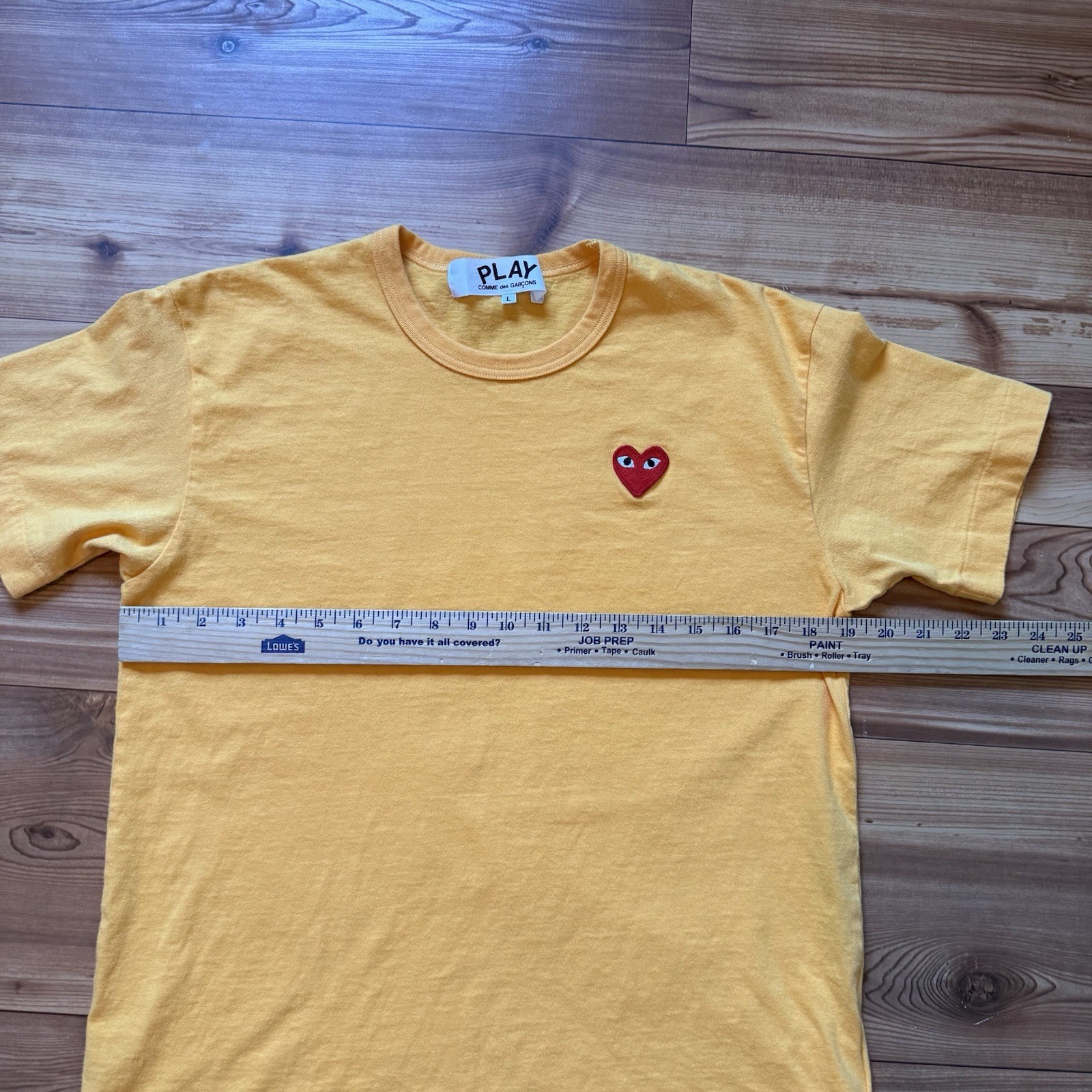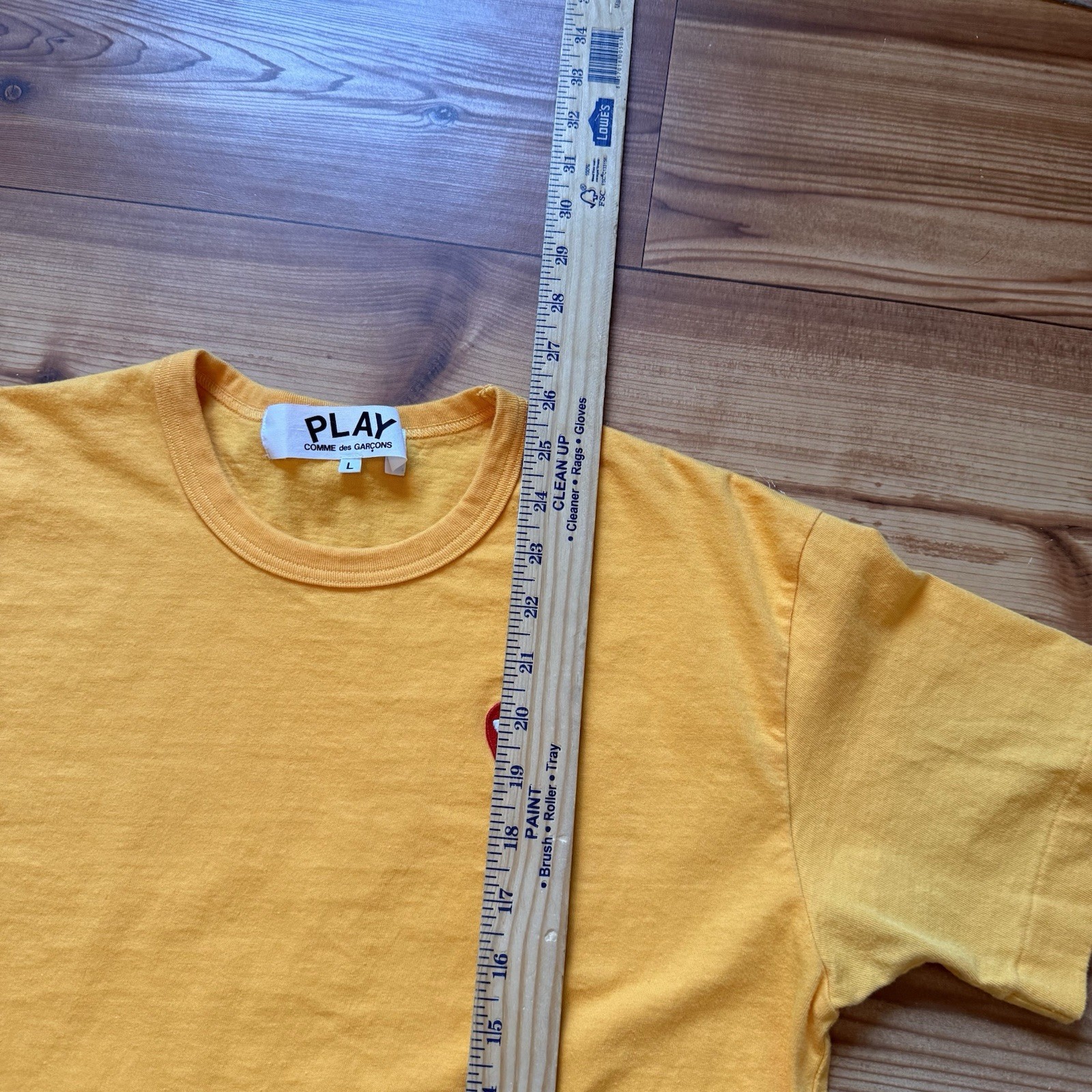 как выглядит Comme des Garcons CDG PLAY Yellow Heart Logo T-Shirt Large fits Medium Japan фото
