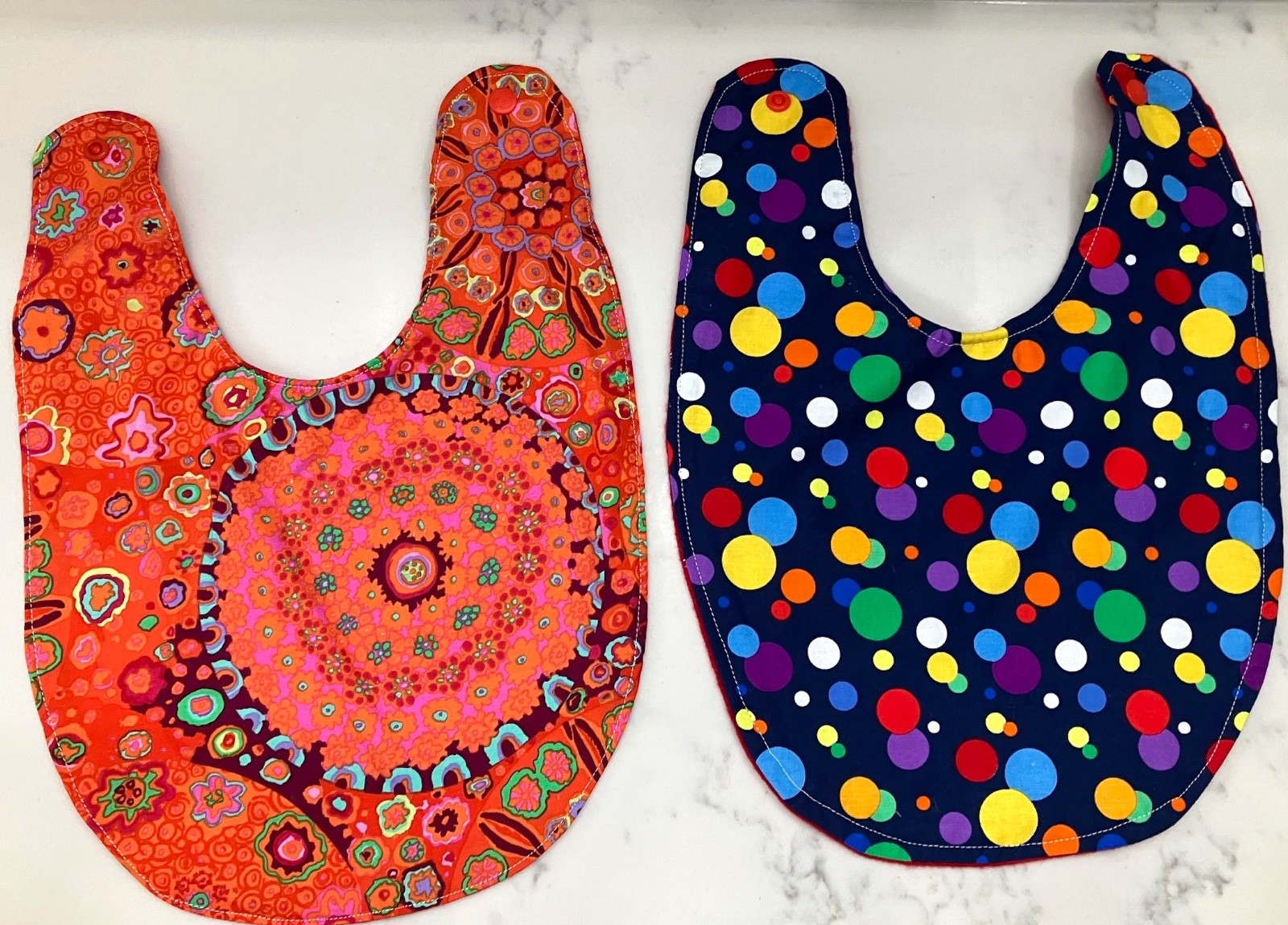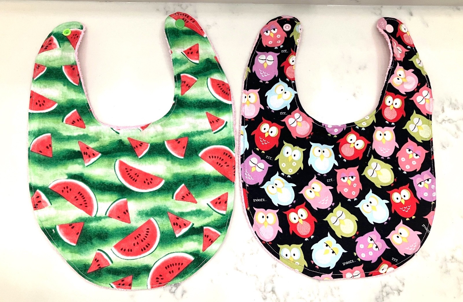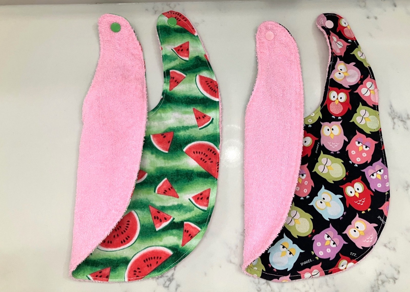 Set of 4 Bright Color Baby Bibs Pretty Prints Organic Terry Flannel