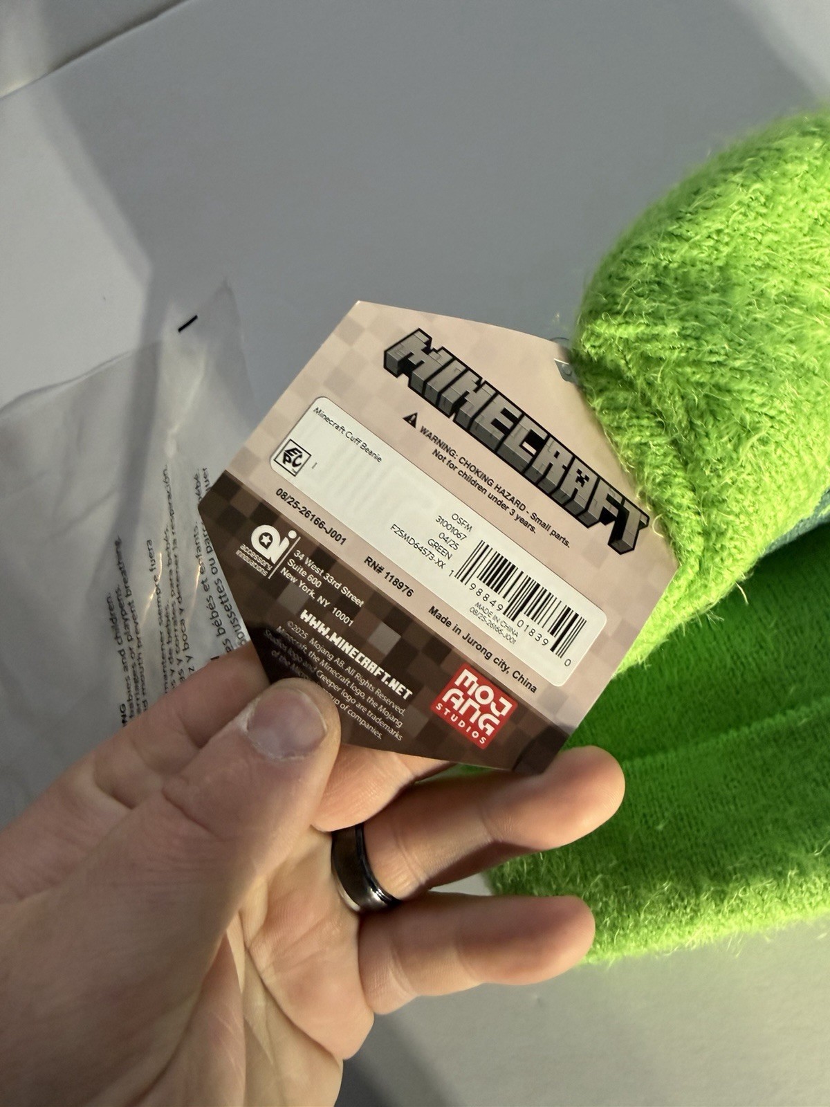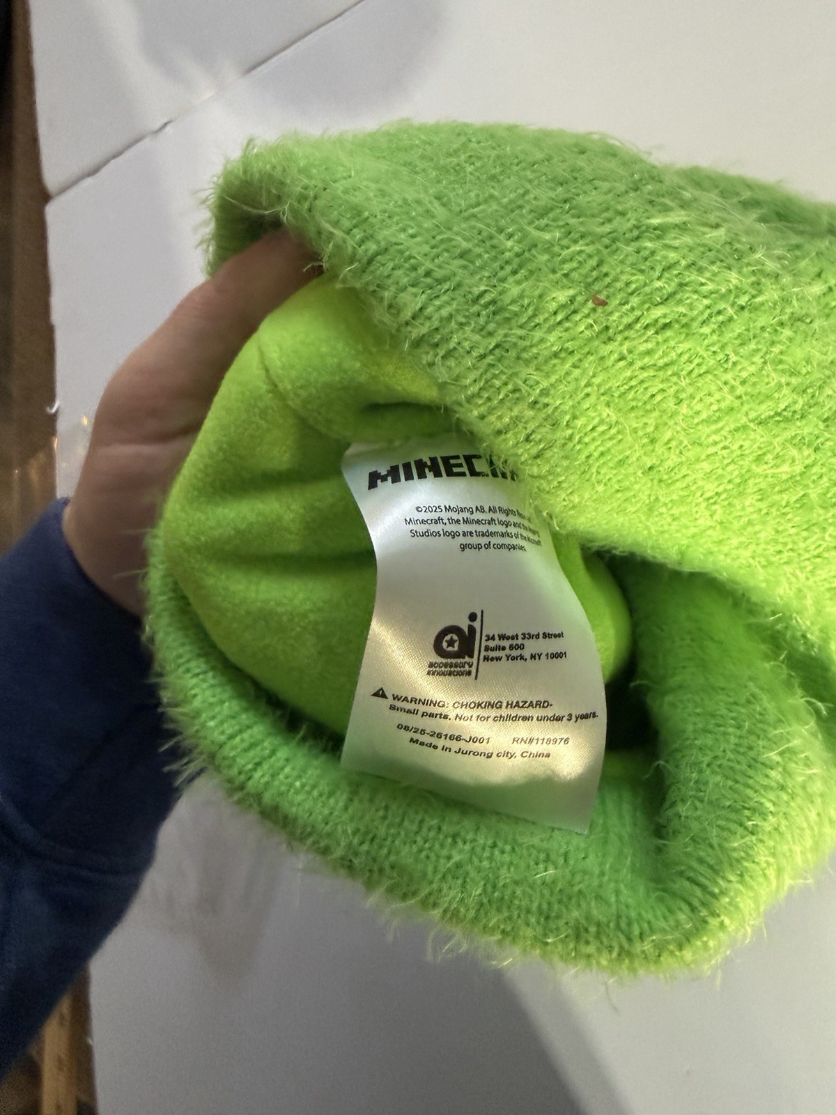 как выглядит Minecraft Creeper Ribbed Cuffed Pom Beanie Nwt фото