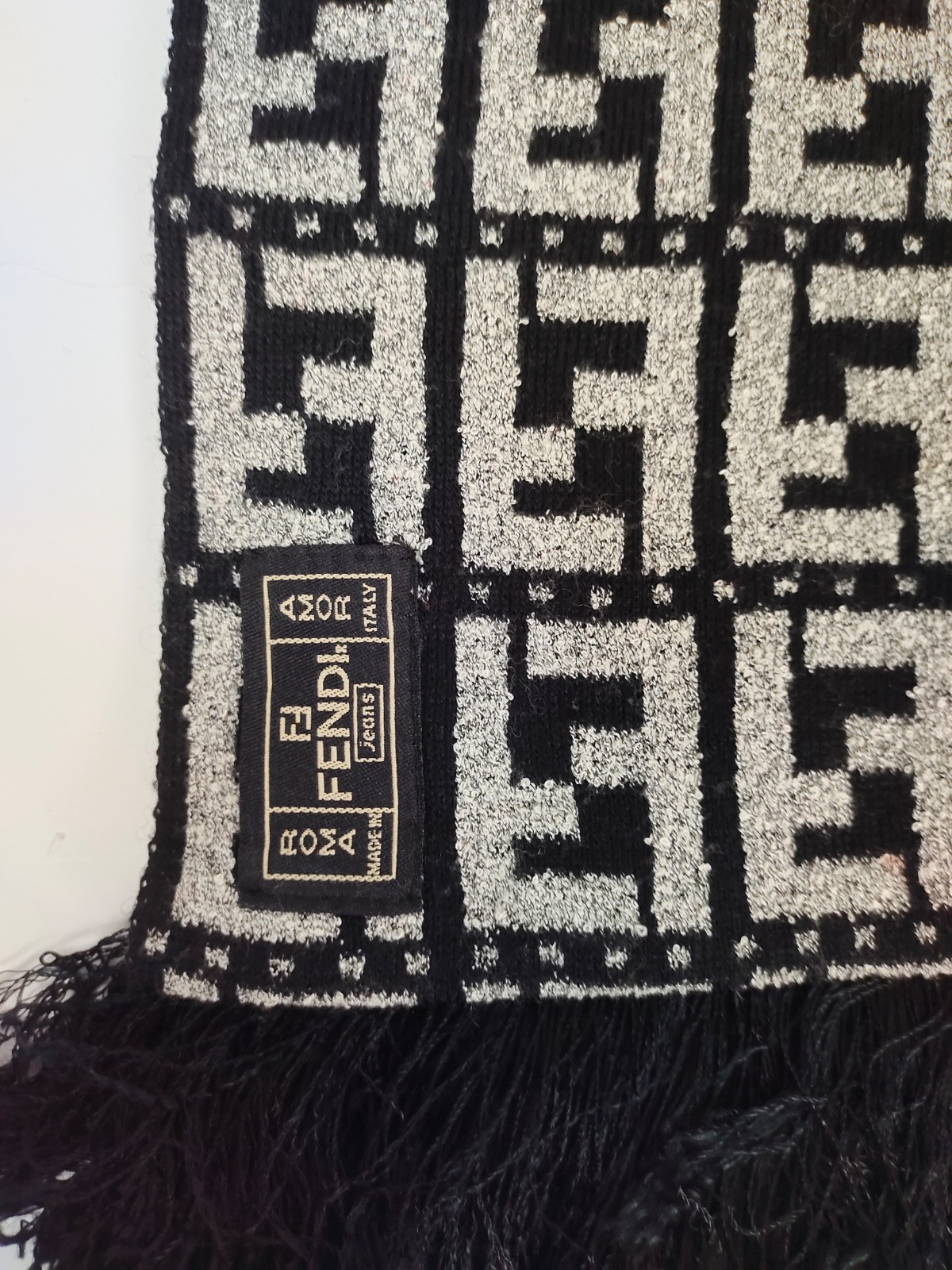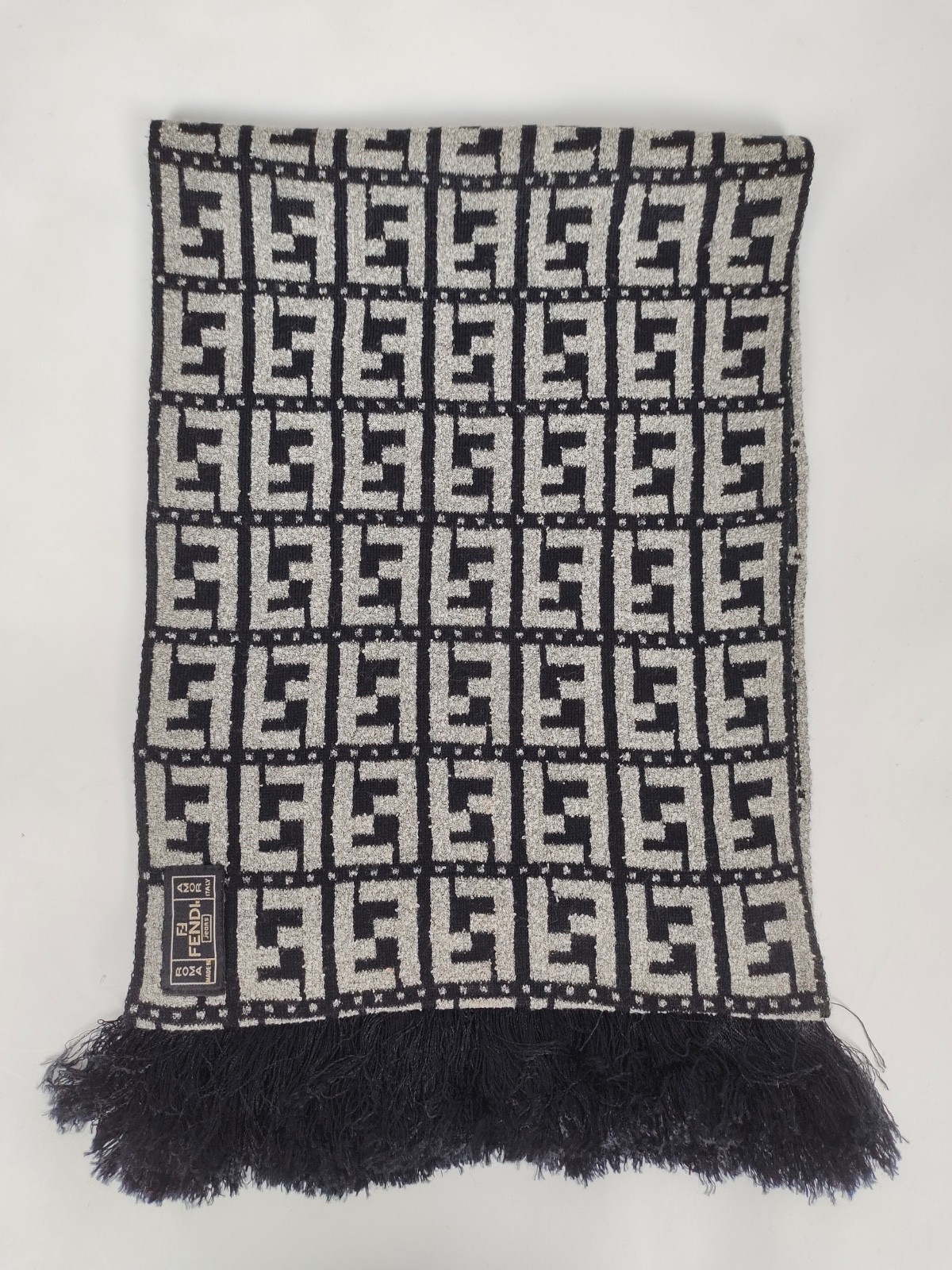 Fendi genuine vintage patterned Grey / Black Wool winter Scarf Scarves