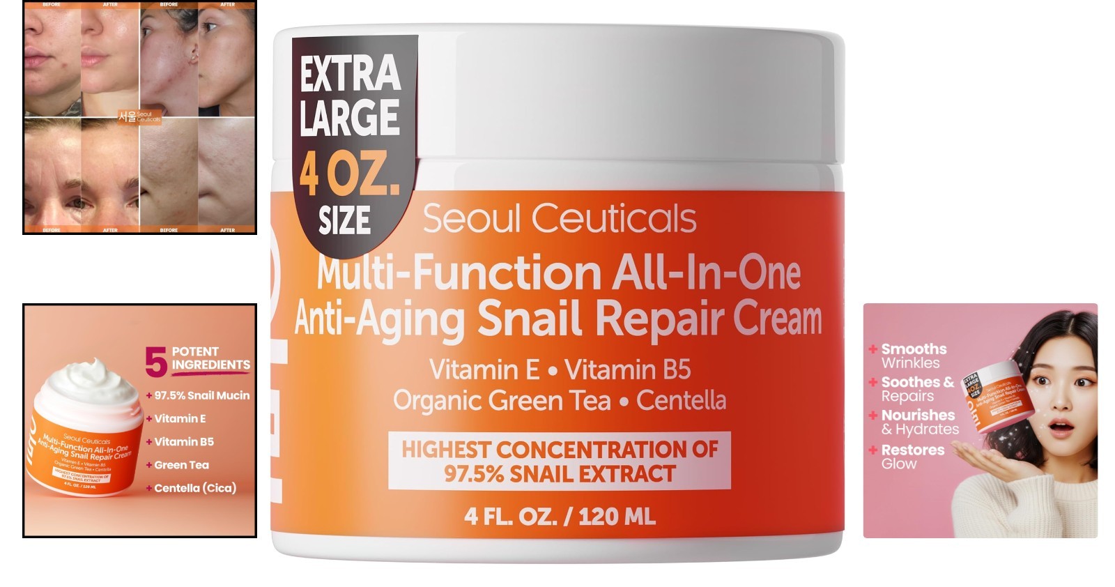 4oz Luxurious 97.5 Snail Mucin Moisturizer Cream for Youthful Skin - K Beauty