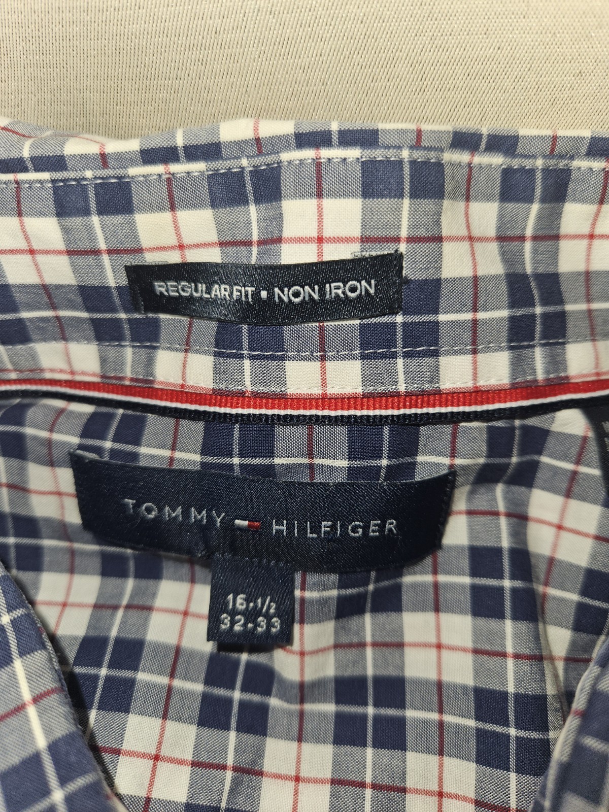 Tommy Hilfiger Plaid 16 1/2 32-33 Regular Fit Non-Iron Men's Shirt