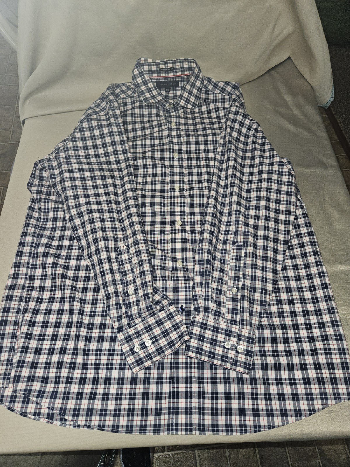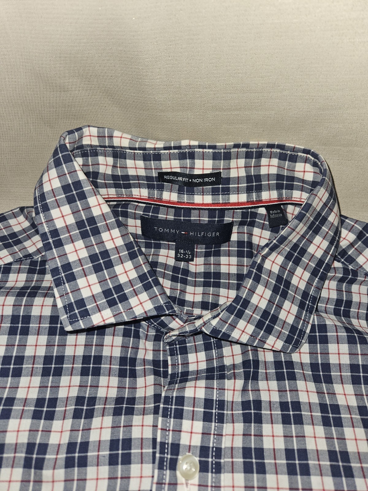 как выглядит Tommy Hilfiger Plaid 16 1/2 32-33 Regular Fit Non-Iron Mens Shirt фото