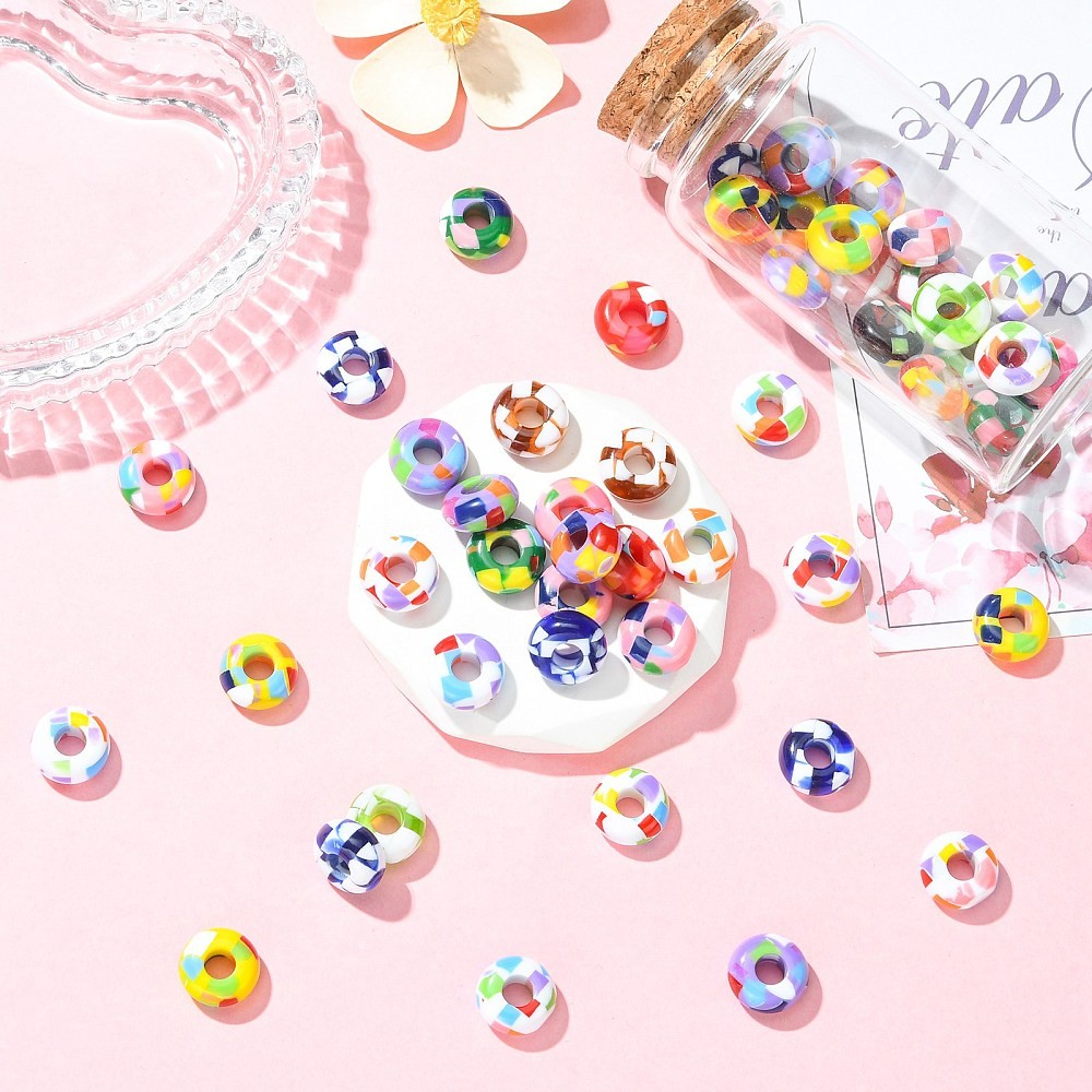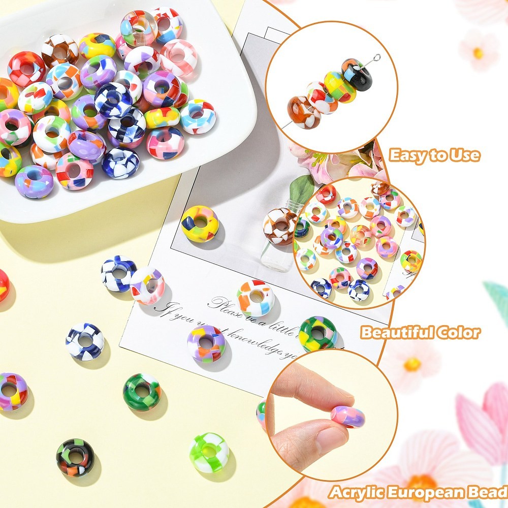 60x Acrylic European Beads Rondelle Printed Large Hole Bead for Necklace Jewelry