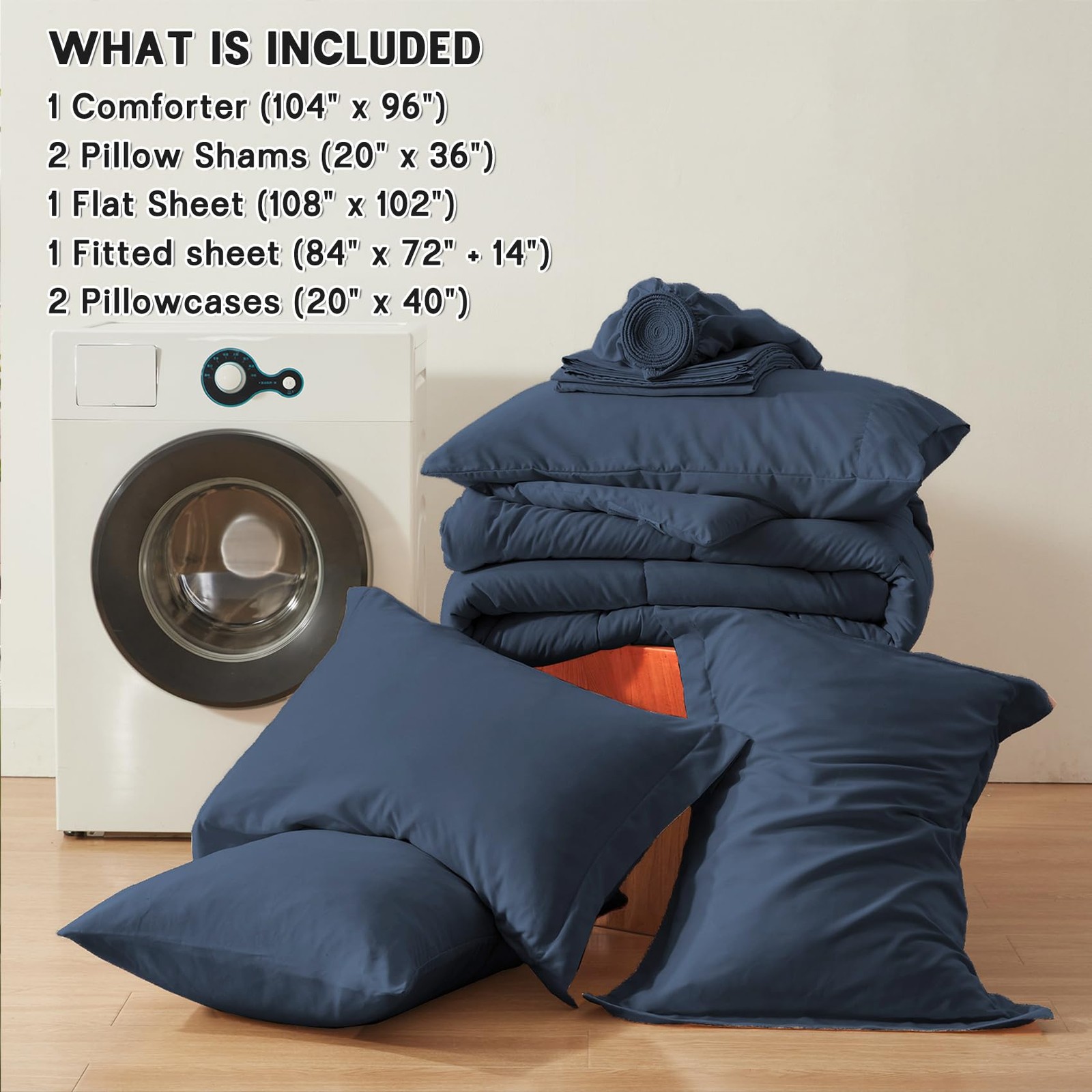 California King Comforter Set 7 Piece, Navy Blue Bed in a Bag, Comforters Cal...