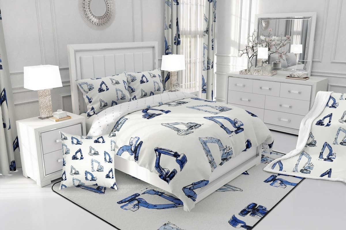 Construction Bedding Set Kids Equipment Trucks Comforter Set Construction Veh...