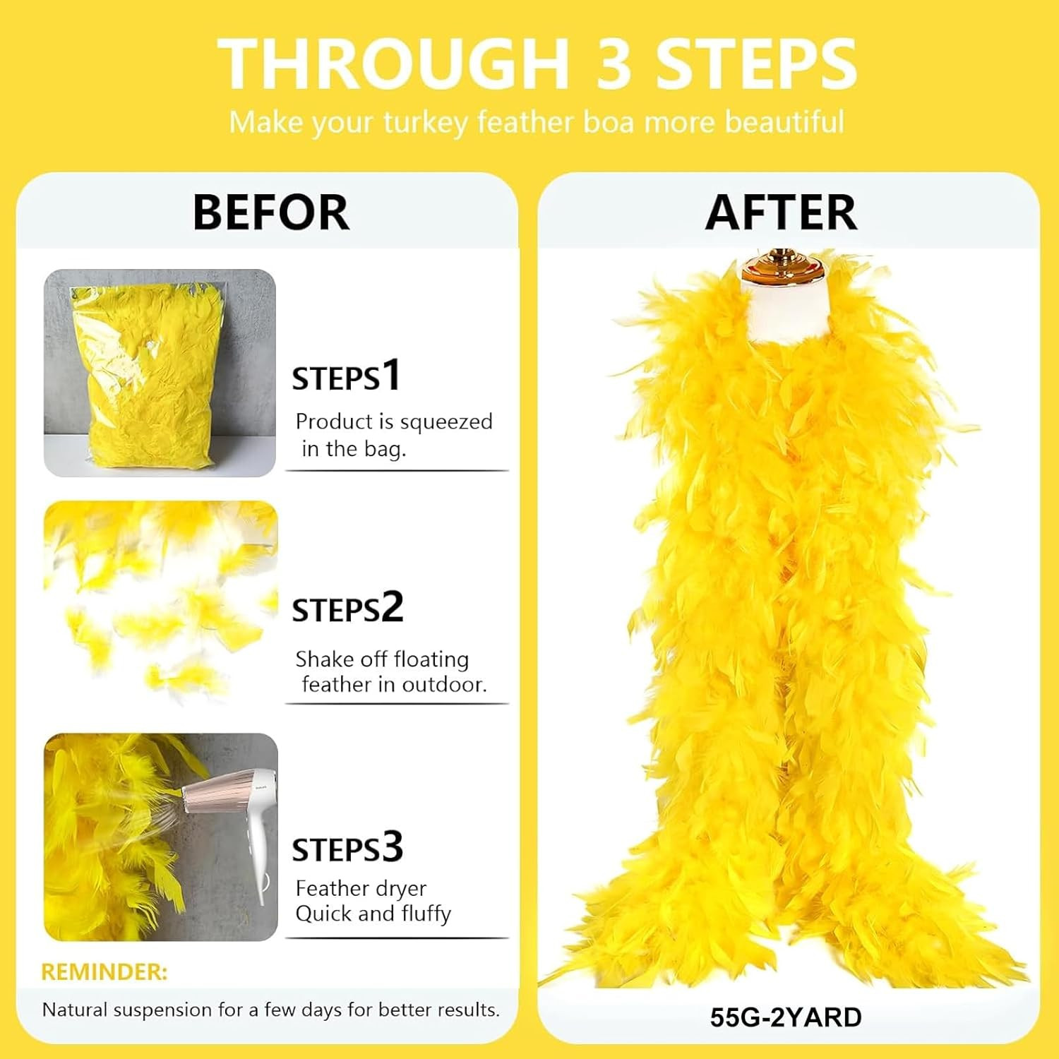 Chandelle Feather Boa 19 Color-38g/55g100g 2Yard Dancing Yellow