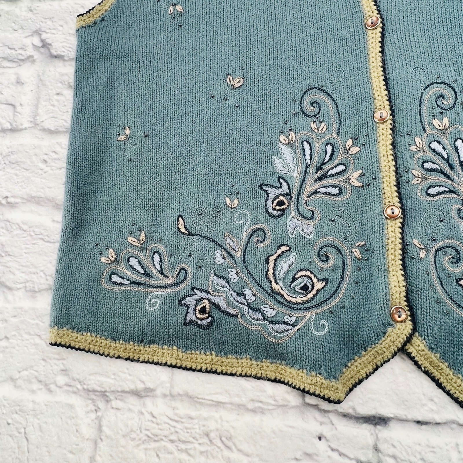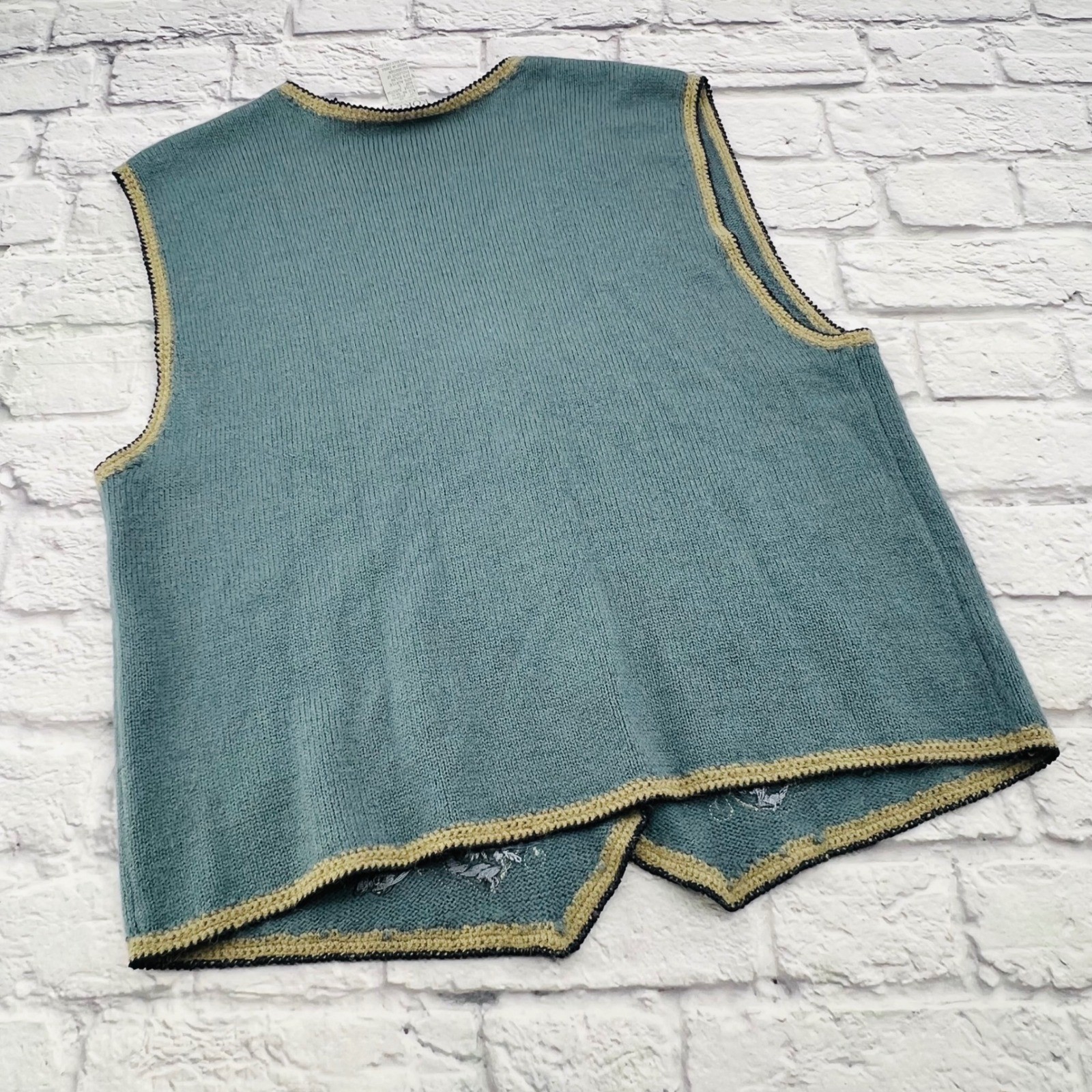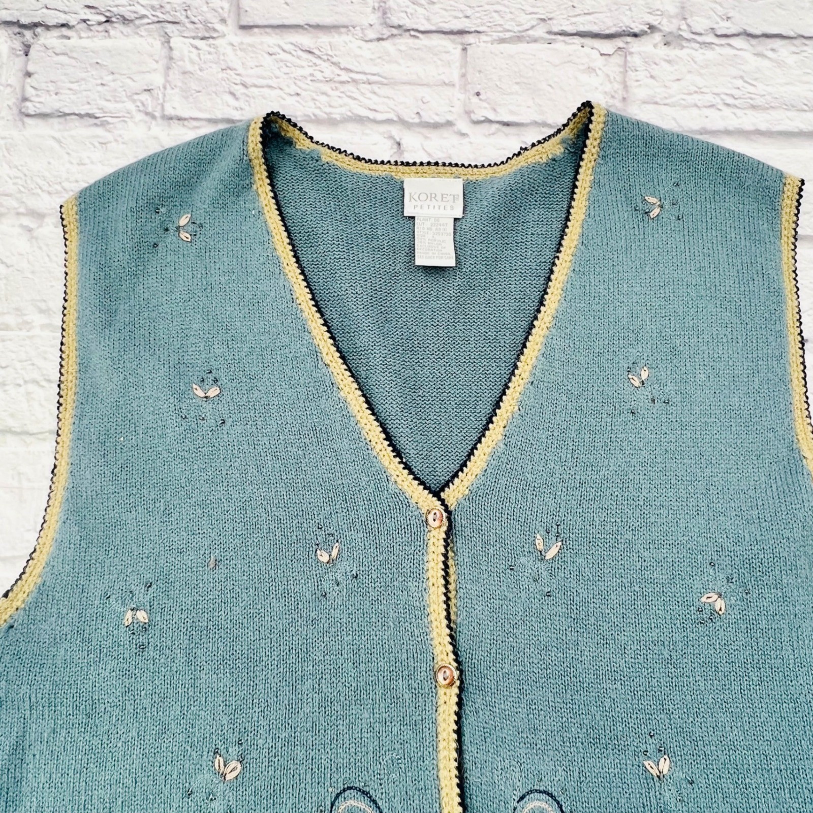как выглядит Koret Petites Blue Embroidered Button Front Knit Vest Womens Large Grandma фото