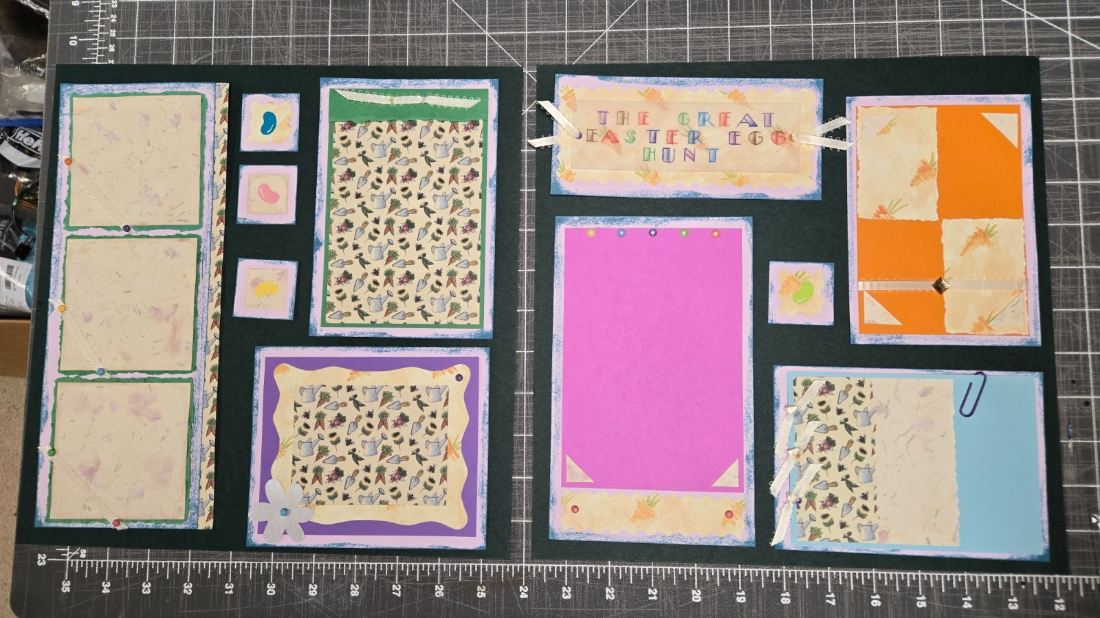 Premade Layout 12 pieces for 12x12 Scrapbook Handmade Great Easter Egg Hunt