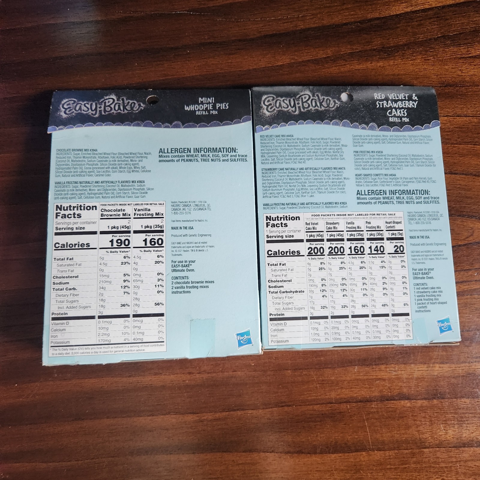 2 Easy Bake Oven mixes. Red Velvet Strawberry Cakes. Mini Whooping Pies. New