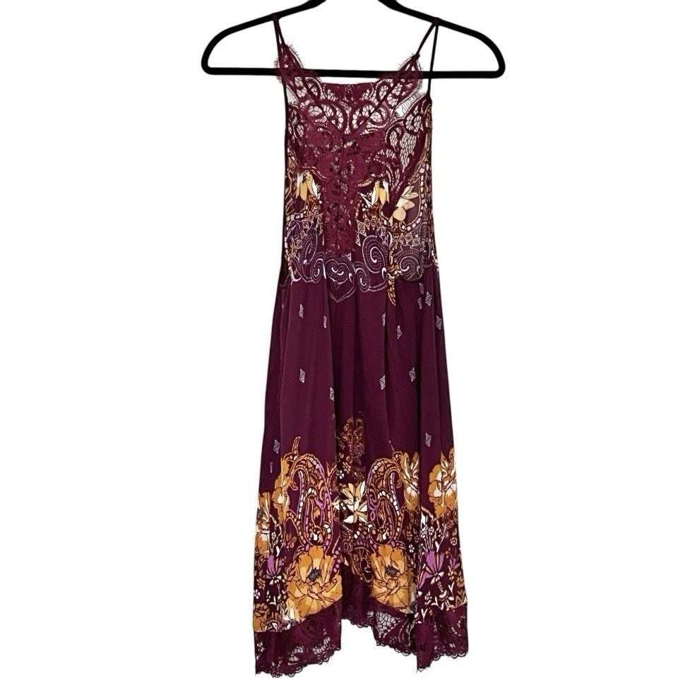 как выглядит Free People Intimately Lace Slip Dress Wine Floral Boho NWT Size Small фото