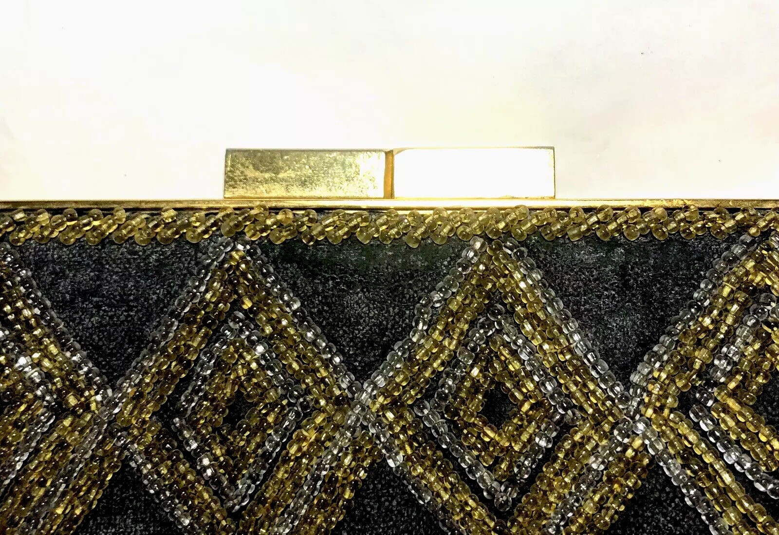 как выглядит Vintage Evening Bag Blue with Gold Silver Beads Walborg Made In Hong Kong фото