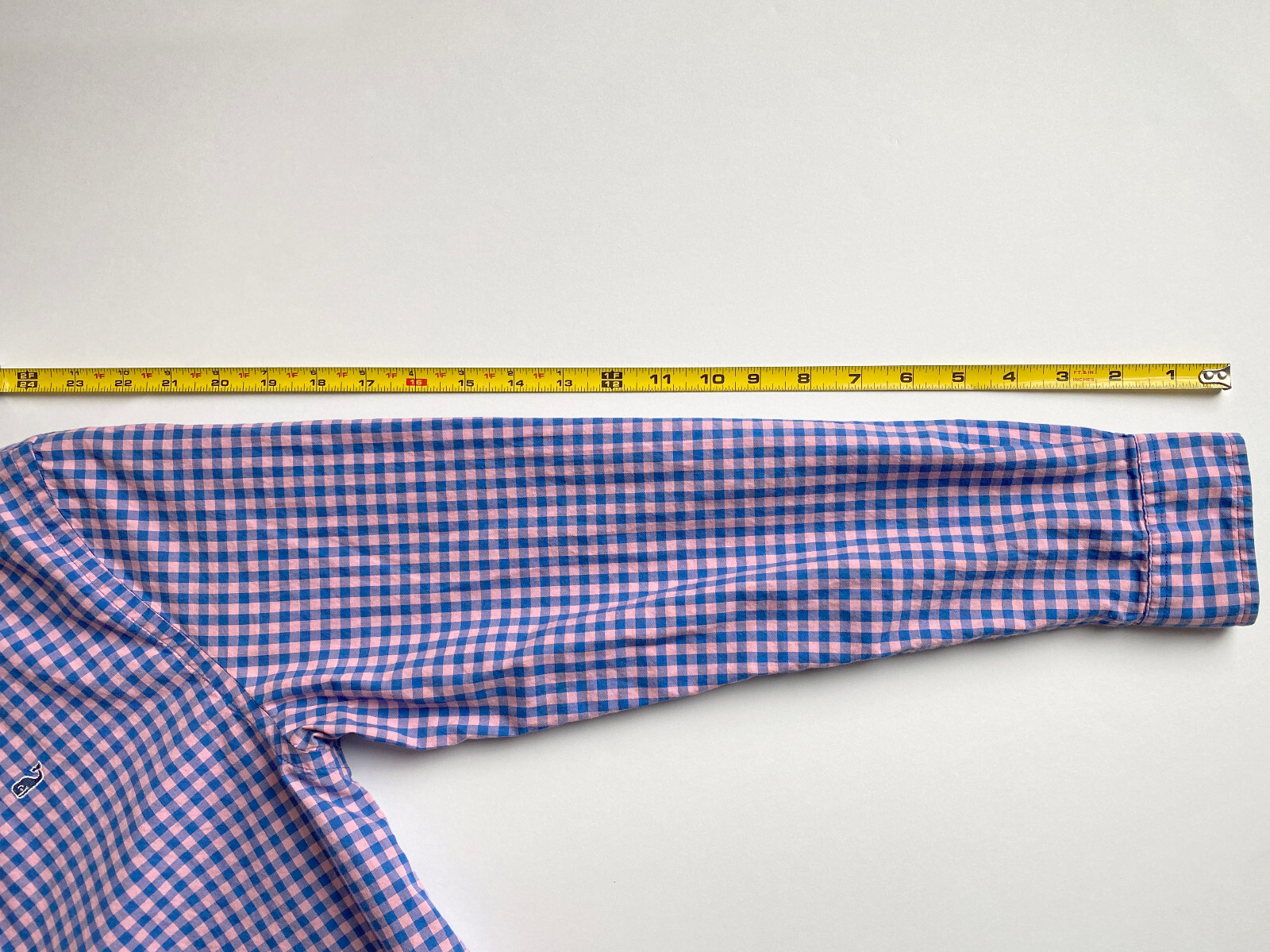 как выглядит Vineyard Vines Boys XL 18 Long Sleeve Button Down Shirt Pink/Blue Check Whale фото