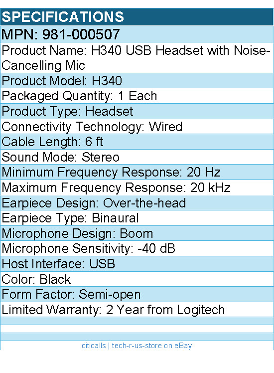 Logitech 981-000507 H340 USB Headset with Noise-Cancelling Mic