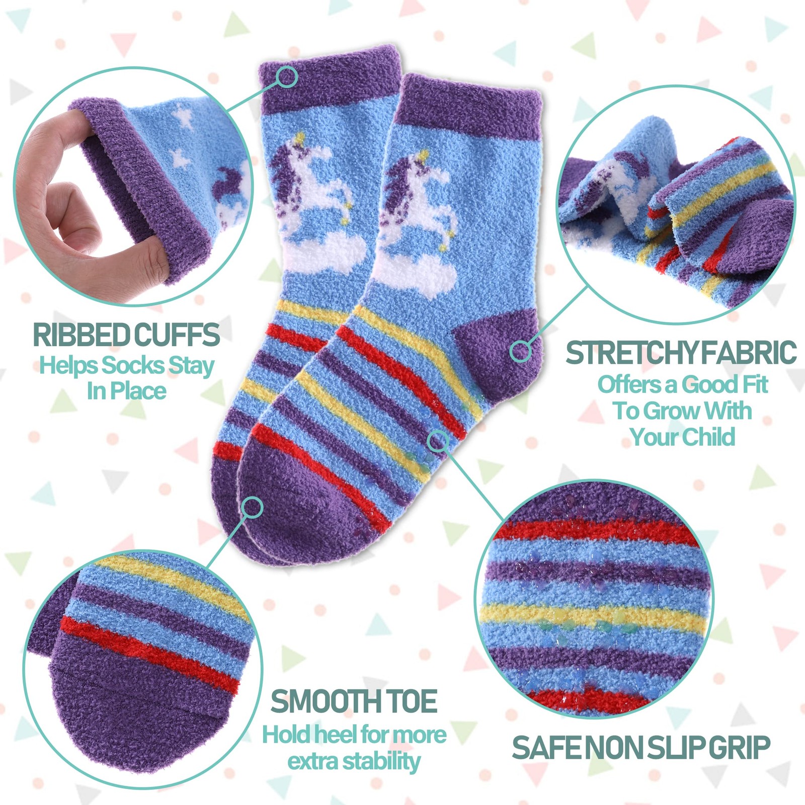 как выглядит Kids Fuzzy Socks Boys Girls with Grips Non Slip Slipper Socks Cozy Fluffy Win... фото