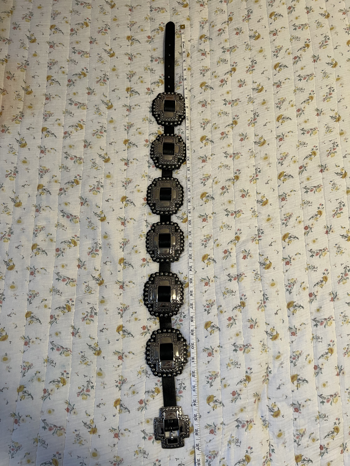 как выглядит Roper Womens Western Belt, Black Leather Cross Concho NWOT Size M 30/32 фото