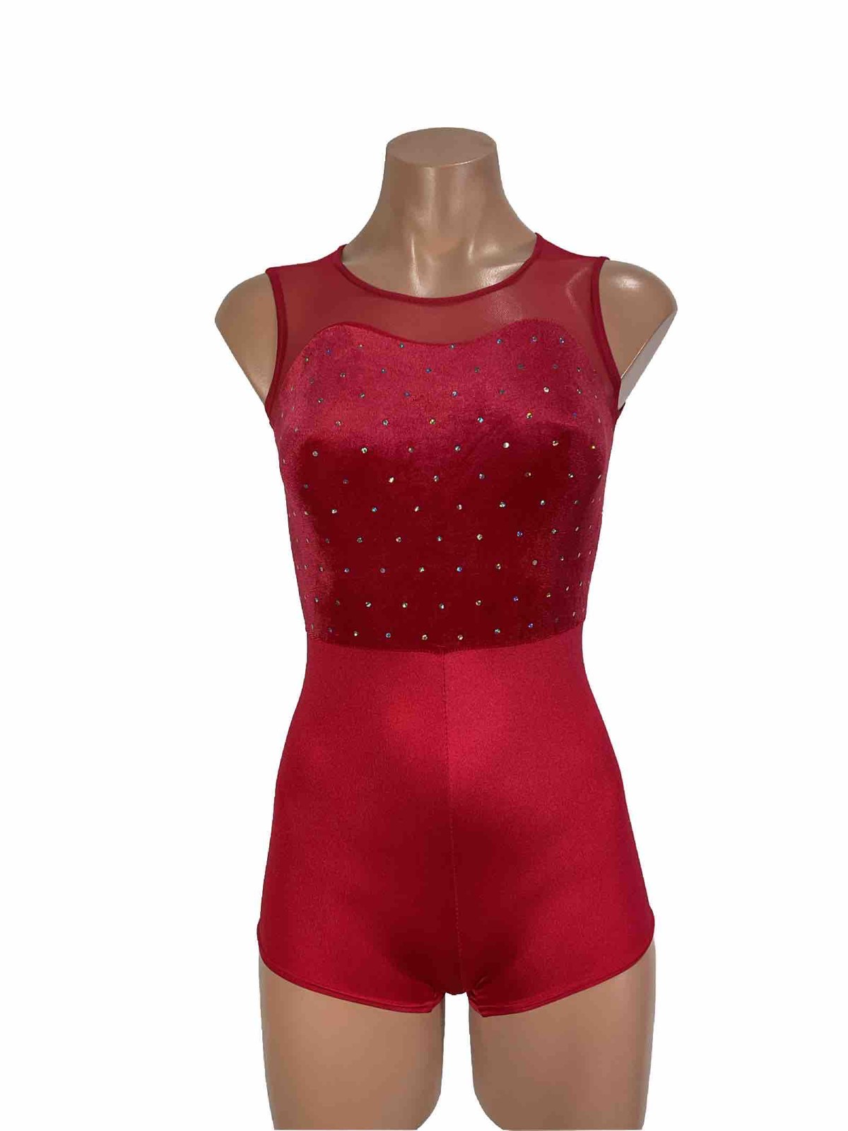 WEISSMAN Dance costume red velvet mesh rhinestone 11951 unitard LC child