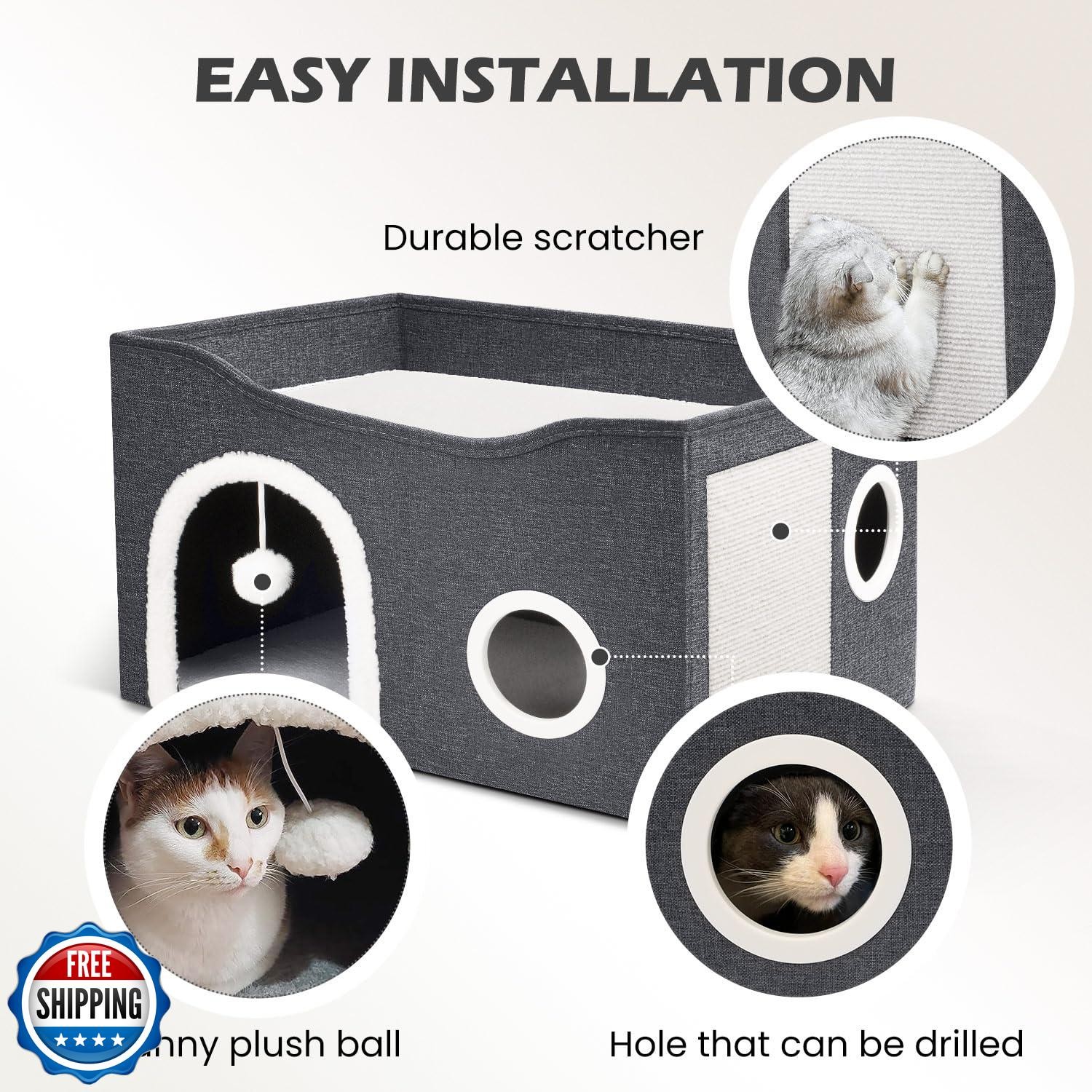 Heeyoo Cat House for Indoor Cats - Large Cat Bed Cave with Fluffy