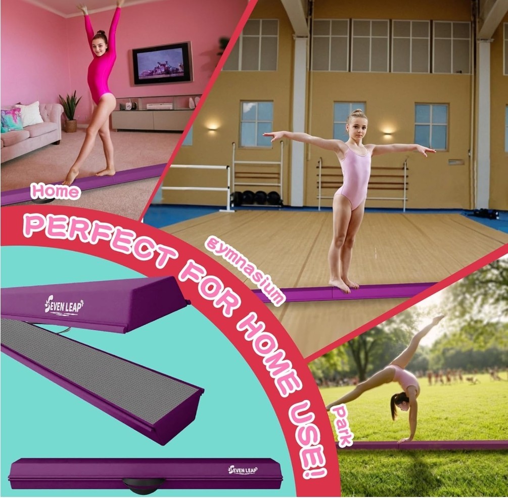 8ft Folding Gymnastics Balance Beam Foam Kids Non-Slip Open Box Pink or Purple