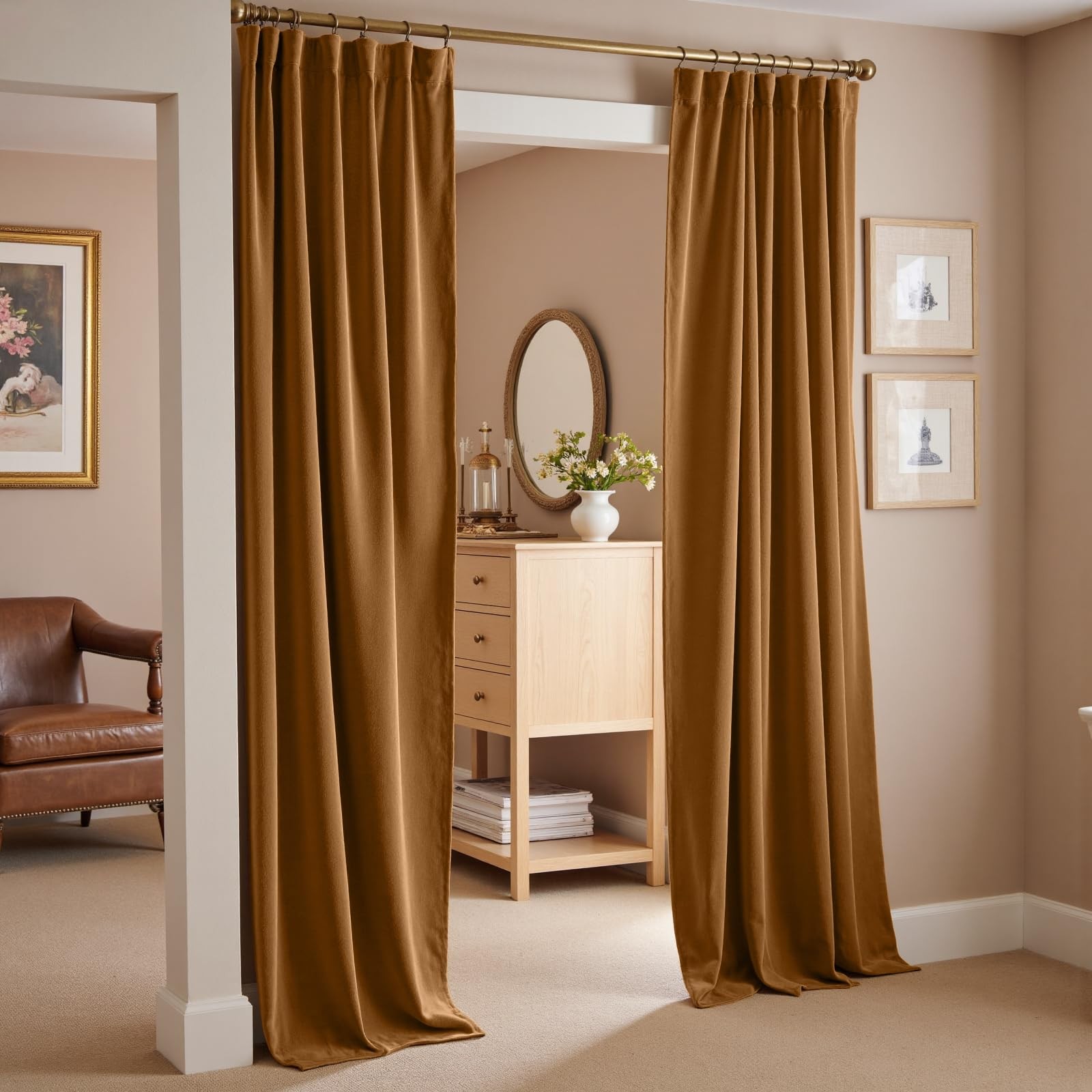 как выглядит Lazzzy Gold Brown Blackout Velvet 52"W x 84"L Pack of 2 , Lined фото