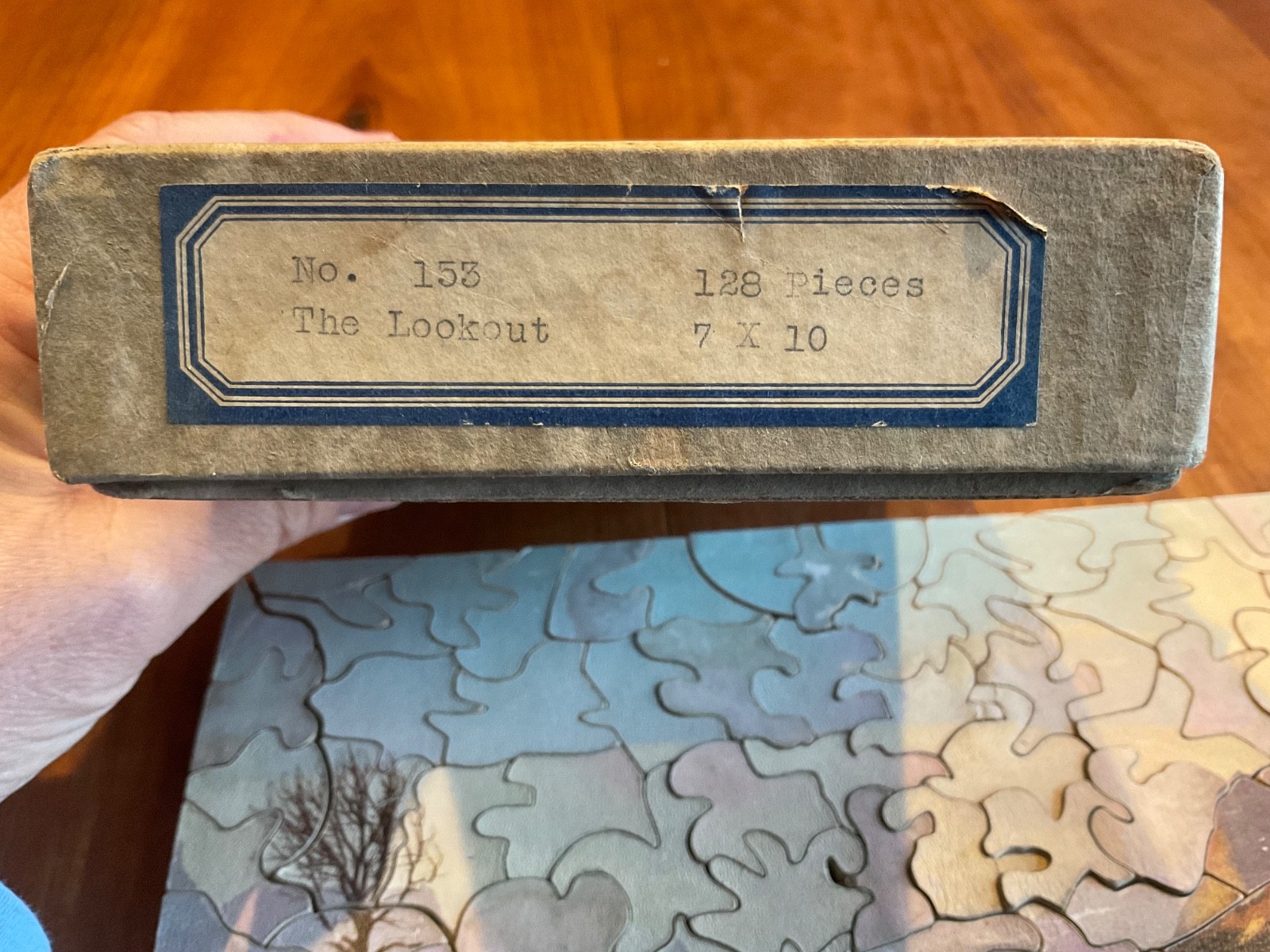 как выглядит Vtg Antique Wooden Picture Puzzle in Box - The Lookout - Mountain River Indians фото
