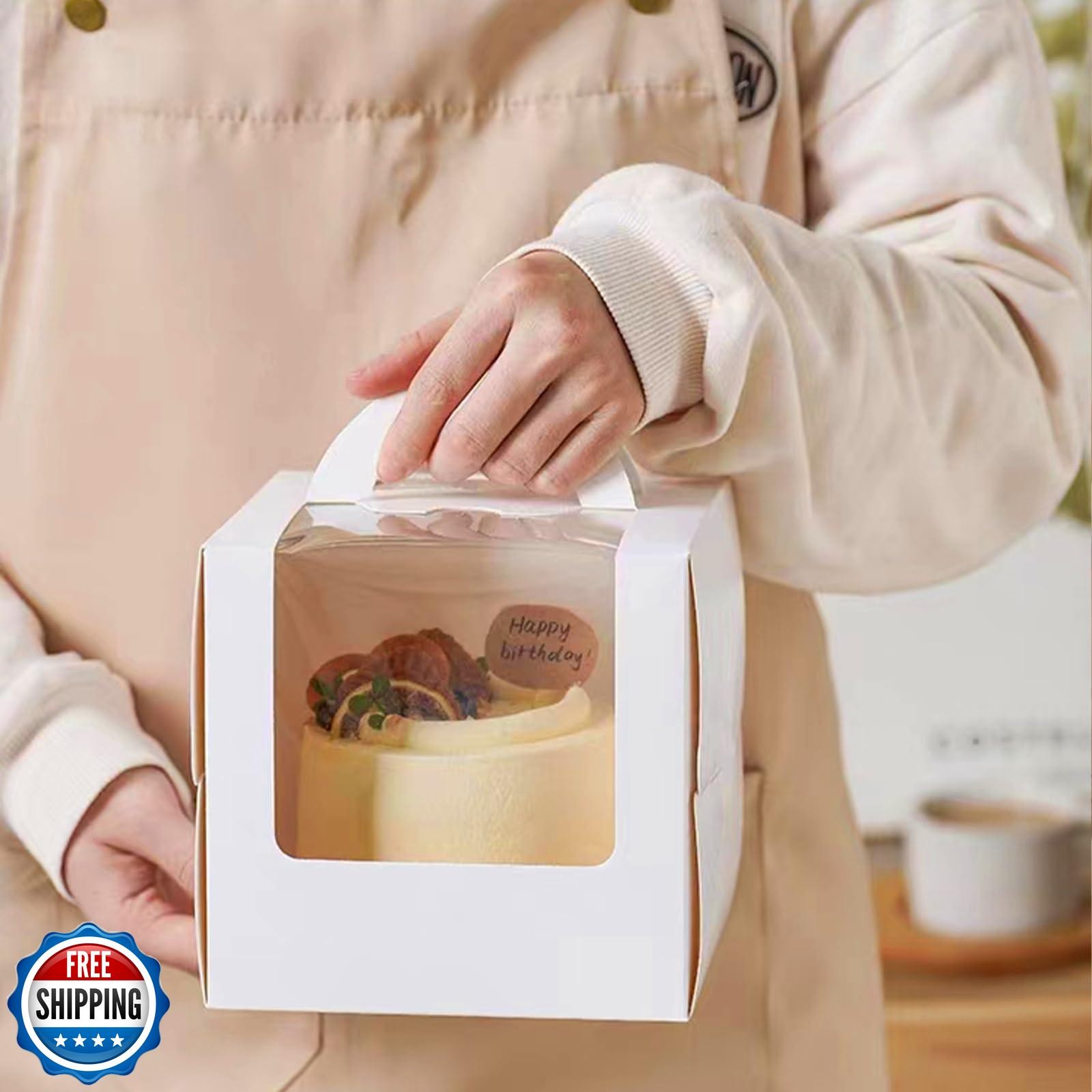 Roppolo 20 Pcs 6x6x5 Inch White Cake Boxes with Window and Handle