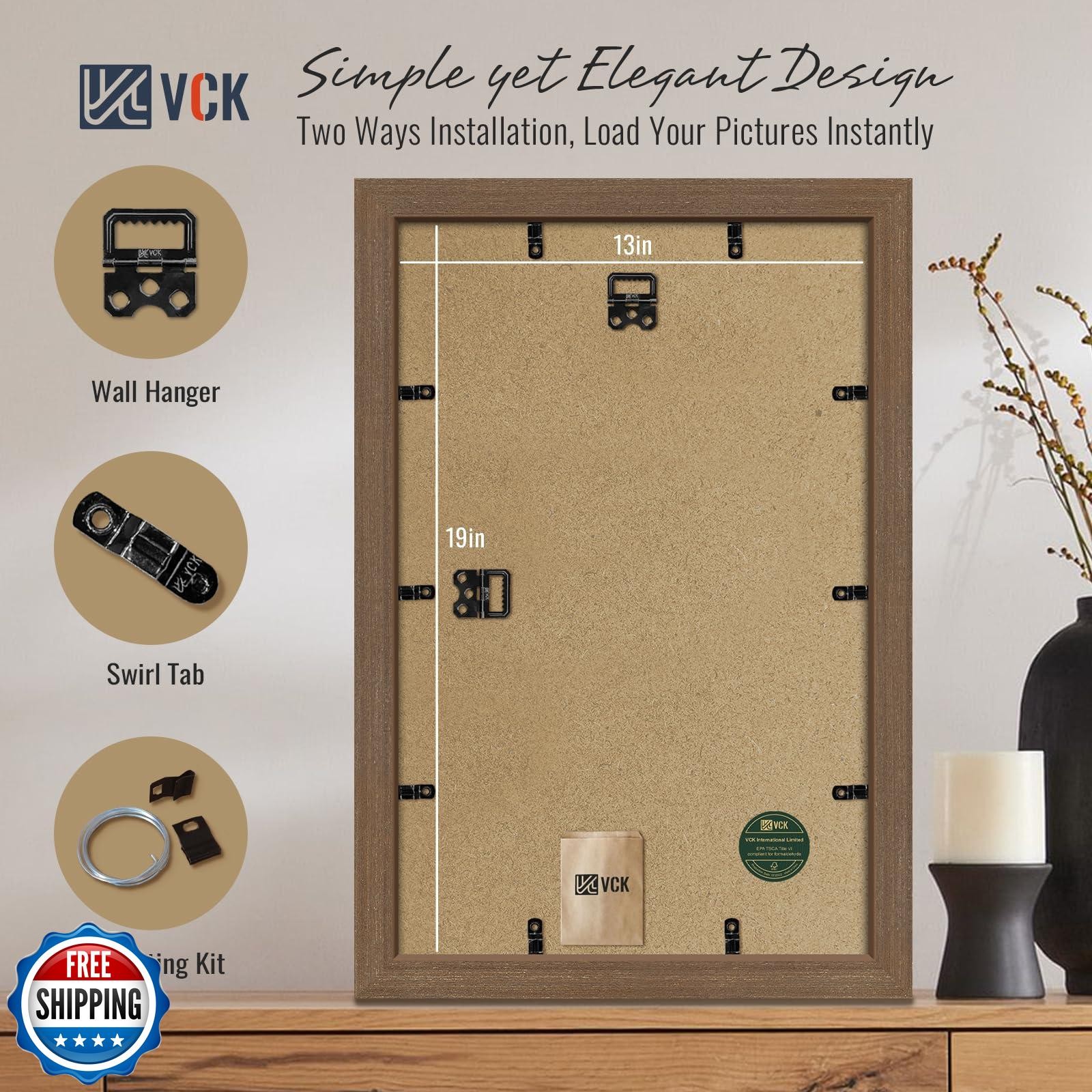 VCK 13x19 Brown Picture Frames 3 Pack, High-End Wood Wide Border