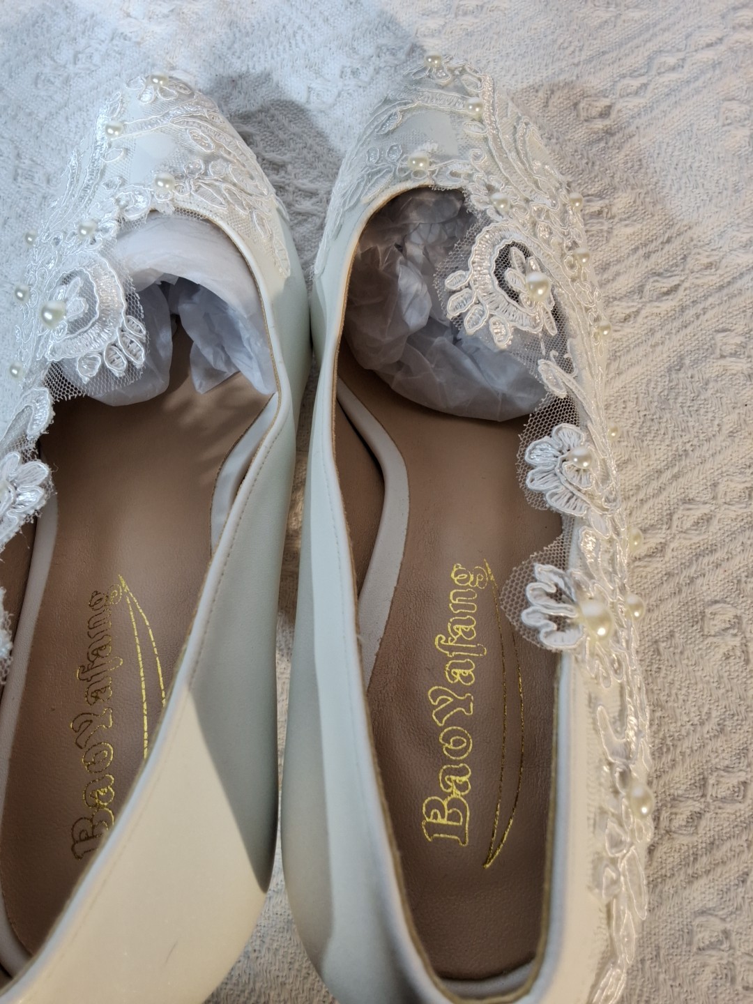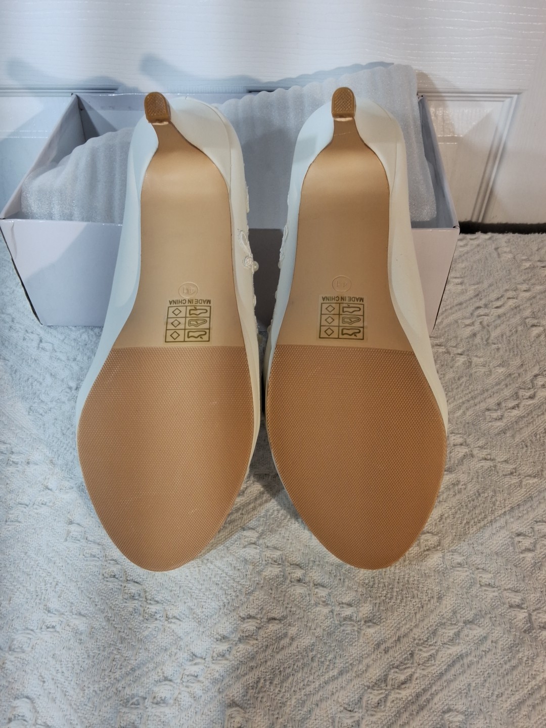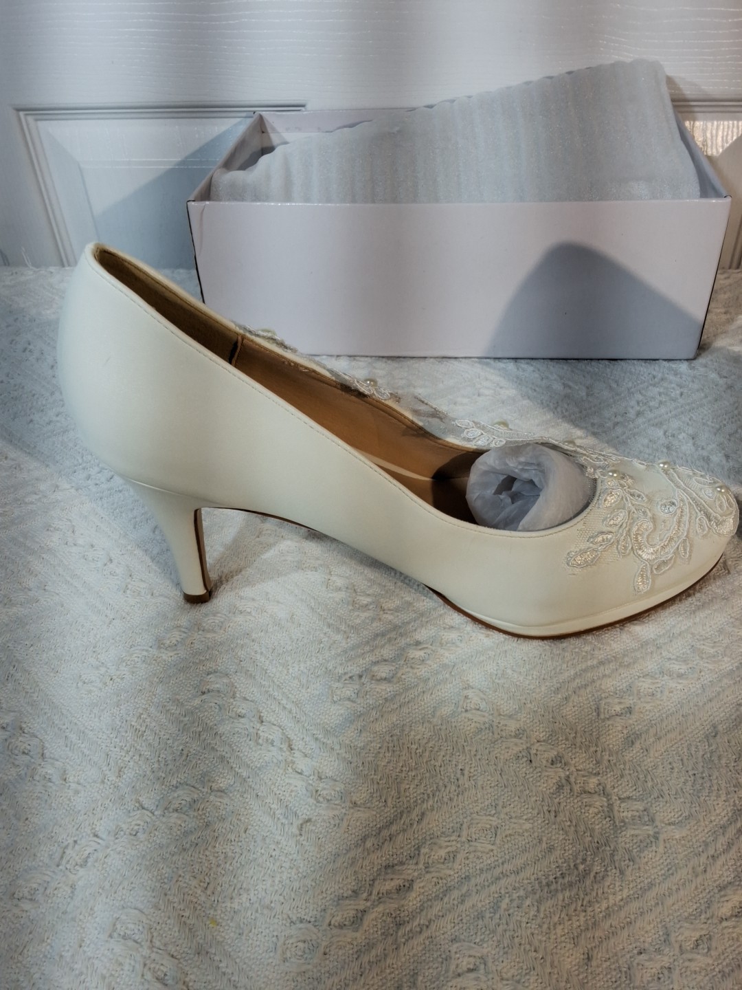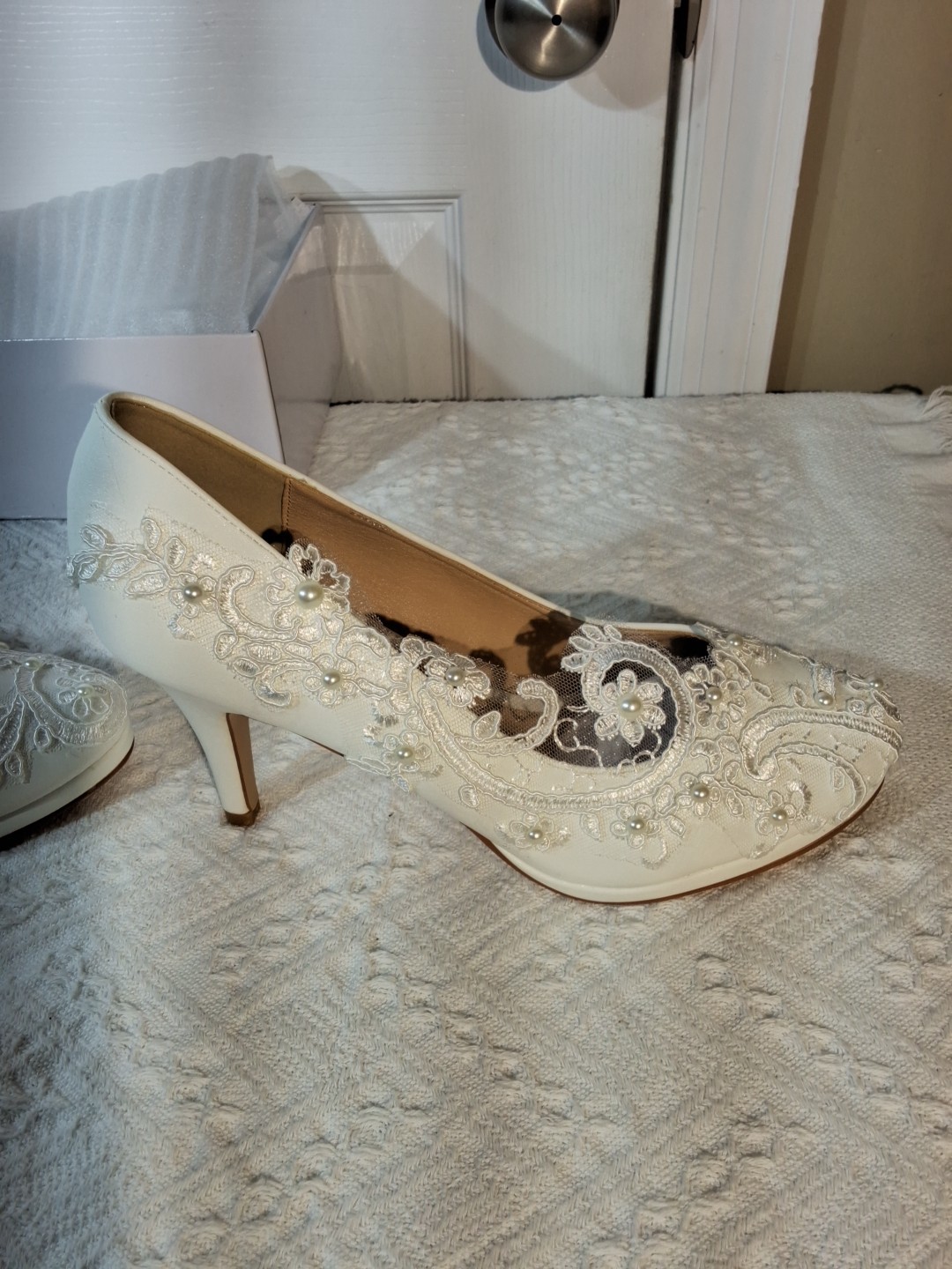 White Lace Pearl Bridal Shoes 3.5 Heels Closed toe Sz 10 Wedding Bridal NIB