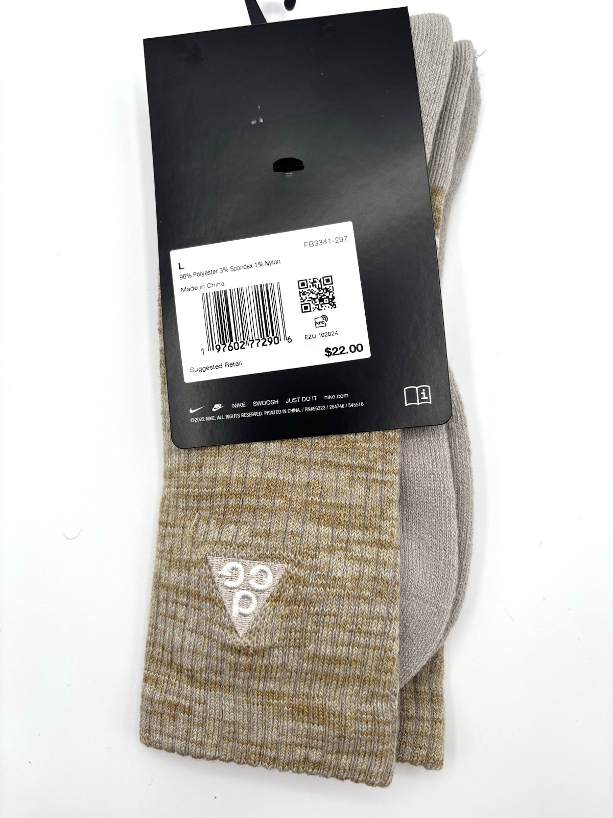 как выглядит NWT Nike ACG Unisex Everyday Cushioned Crew Socks Size Large Beige/Grey фото