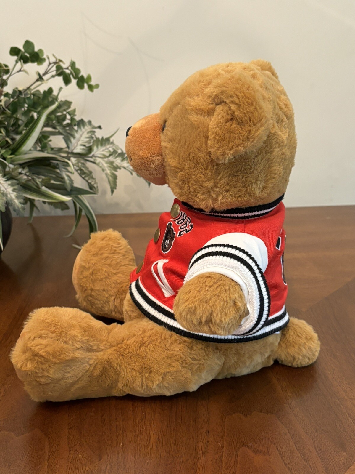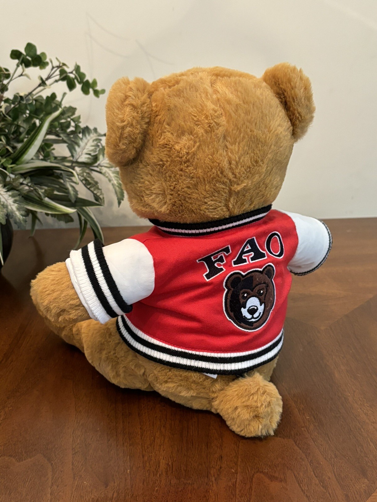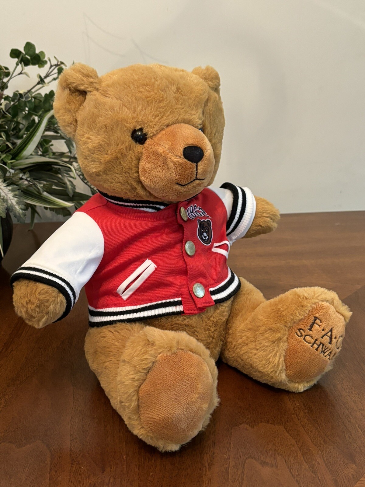 FAO Schwarz Brown Teddy Bear Plush Brass Button Varsity Jacket 12