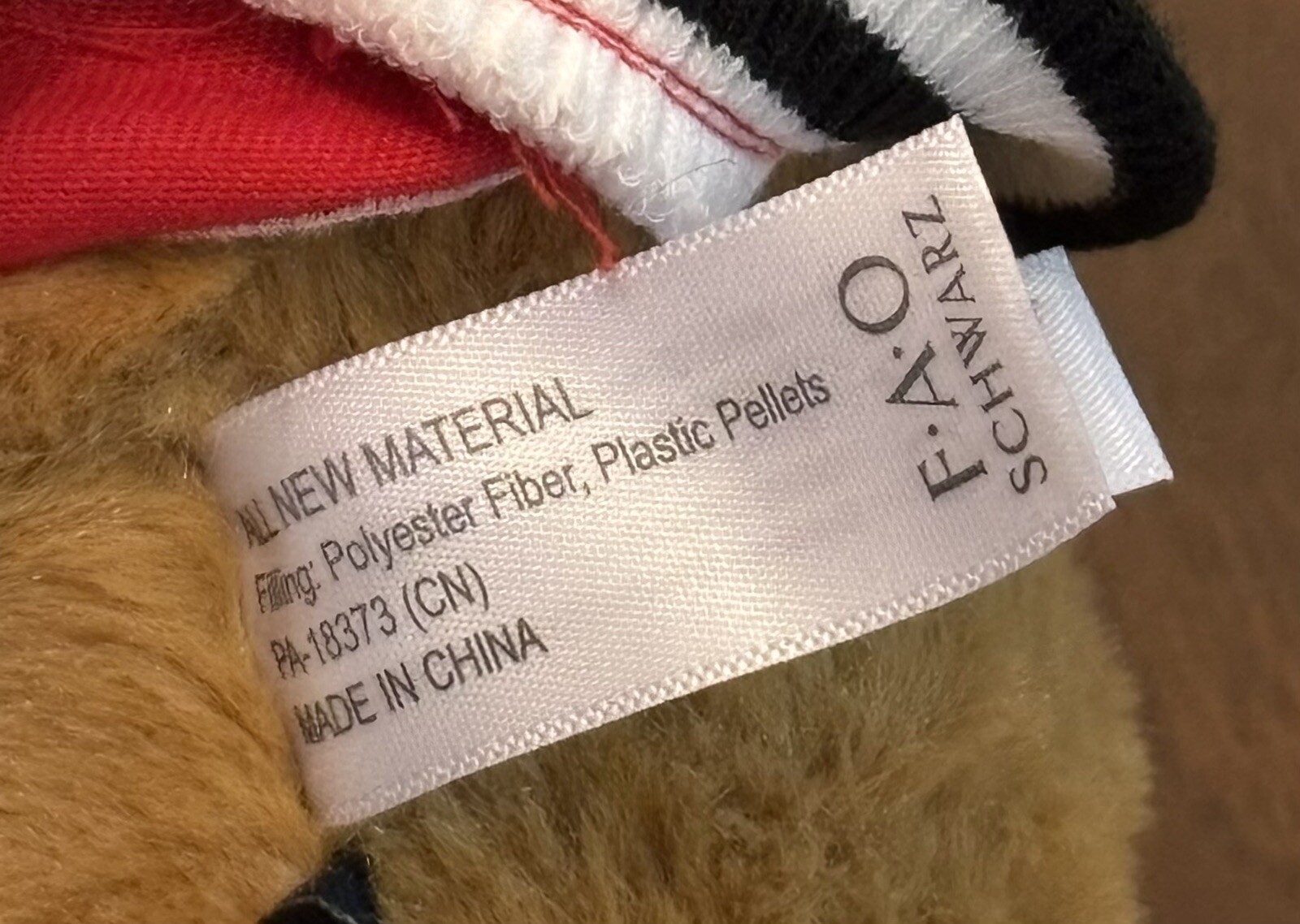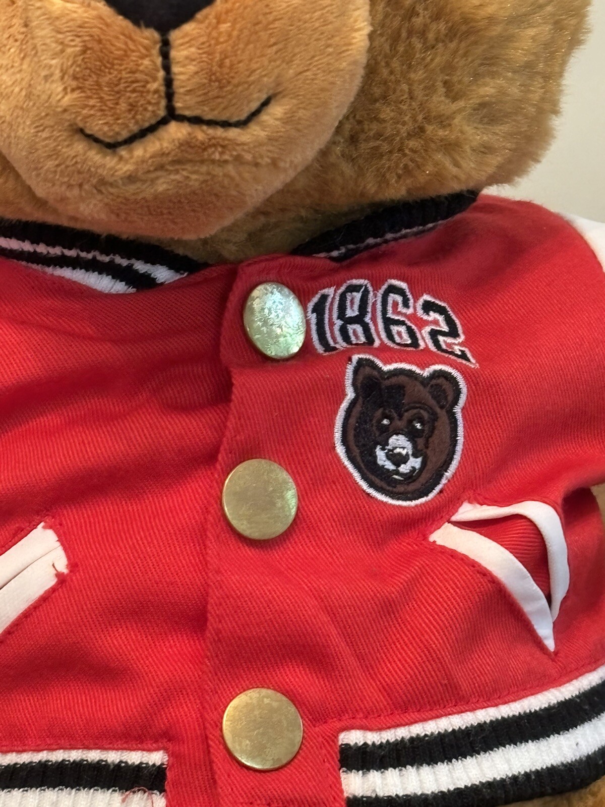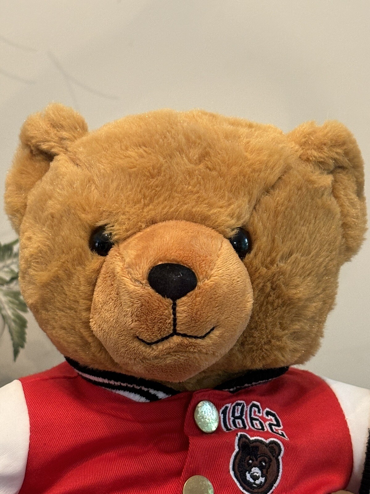 как выглядит FAO Schwarz Brown Teddy Bear Plush Brass Button Varsity Jacket 12" фото