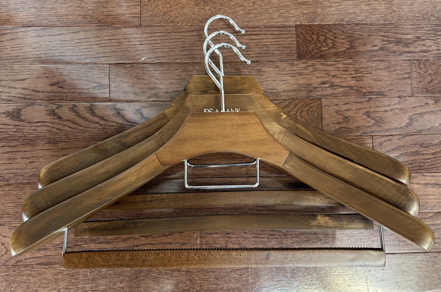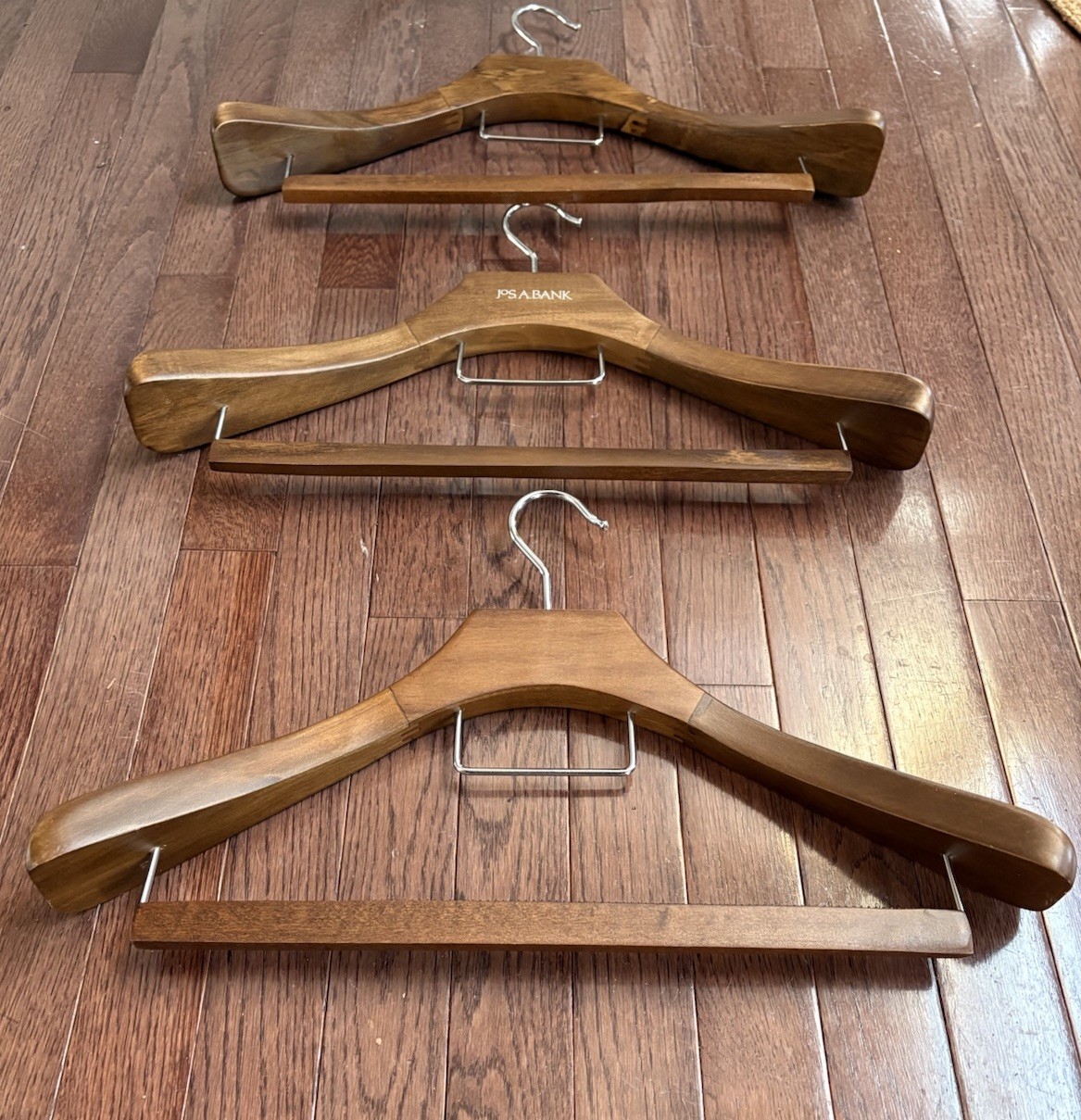 3 VTG Jos A Bank High Quality Wood Suit Hangers, Non-Slip Trouser Cross Bar