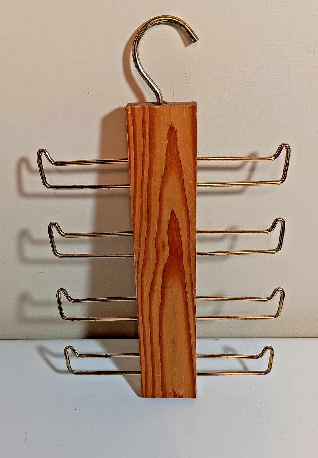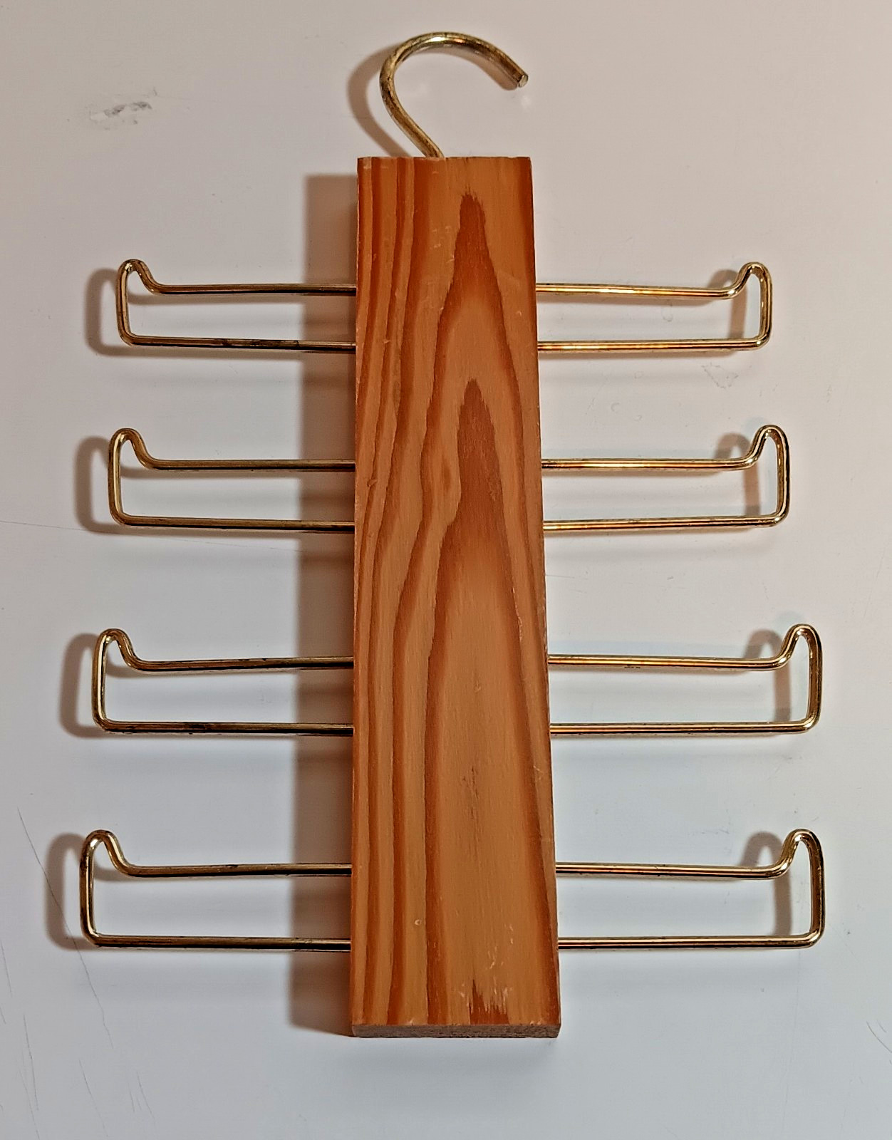 Vtg MCM Natural Varnished Wooden Tie, Belt and Scarf Hanger, Brass Hardware