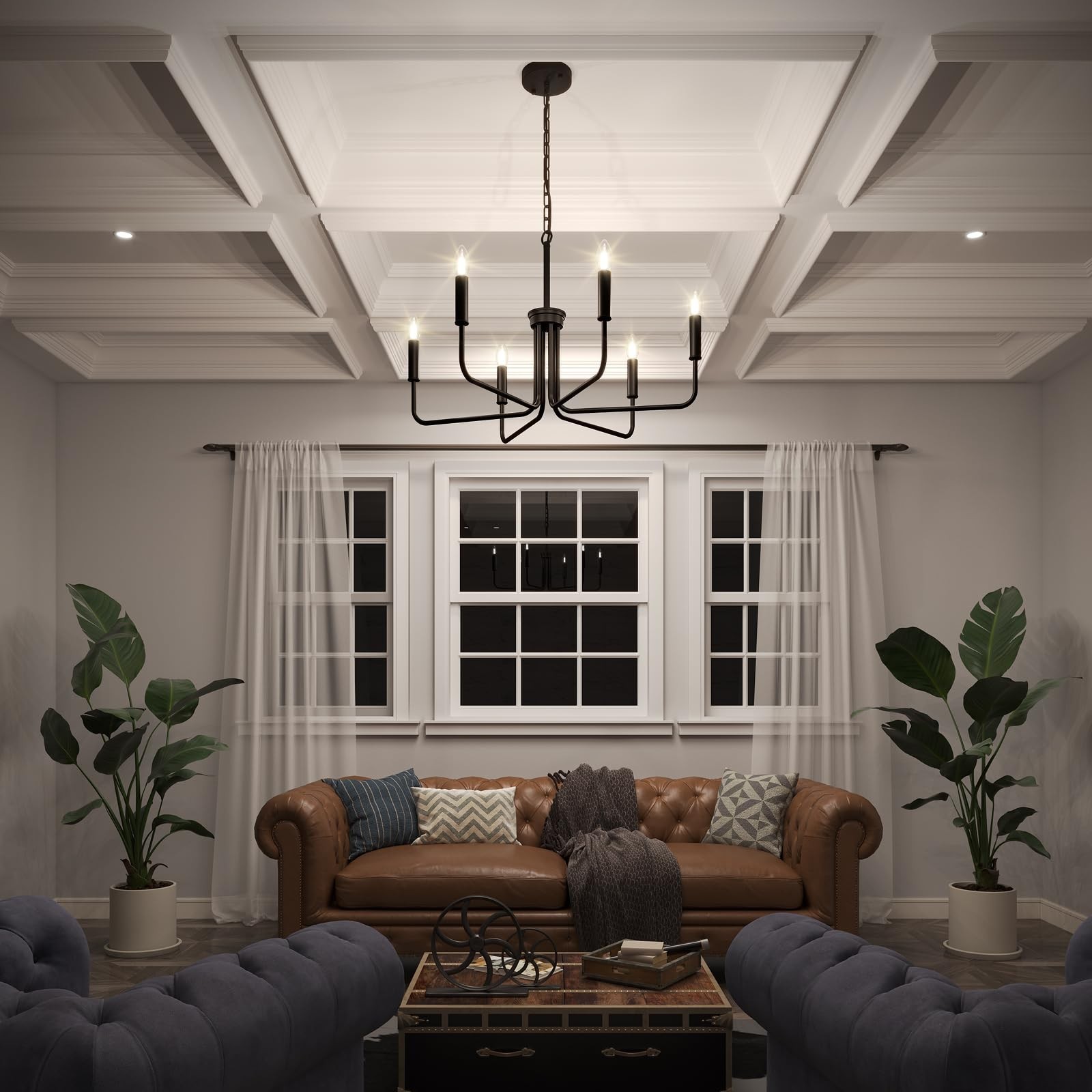 Black Chandelier, 6 Light Farmhouse Chandelier for Dining Room Light Fixture,...