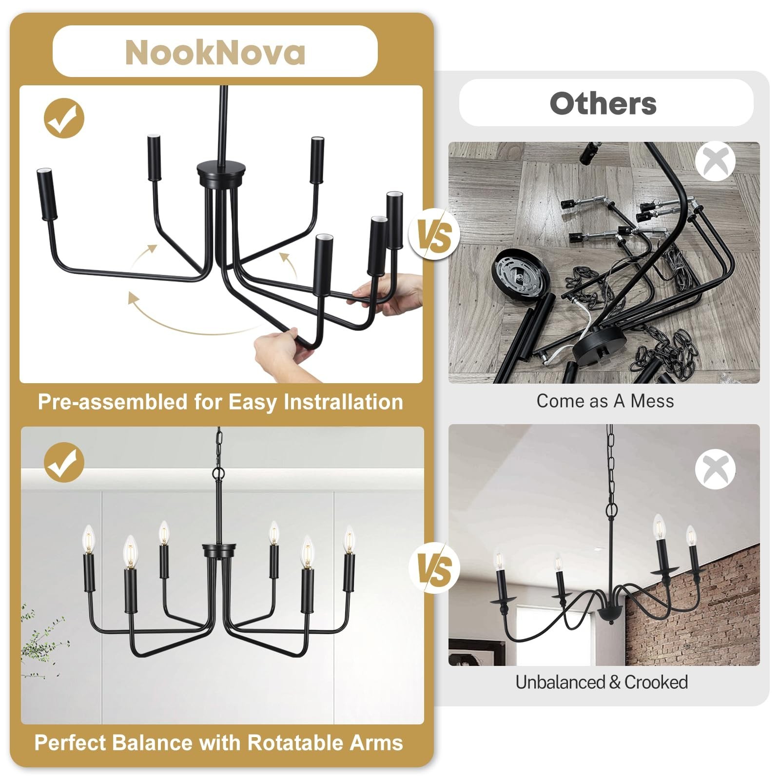 как выглядит Black Chandelier, 6 Light Farmhouse Chandelier for Dining Room Light Fixture,... фото