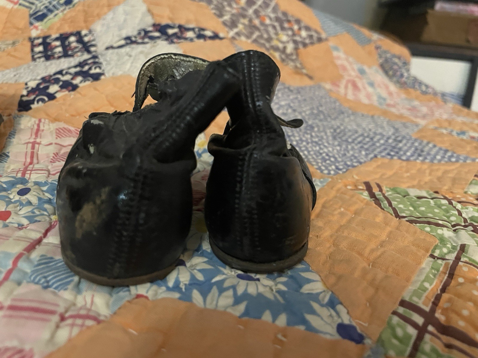 2 Pair Of Victorian Leather Baby Shoes Black White Button Up