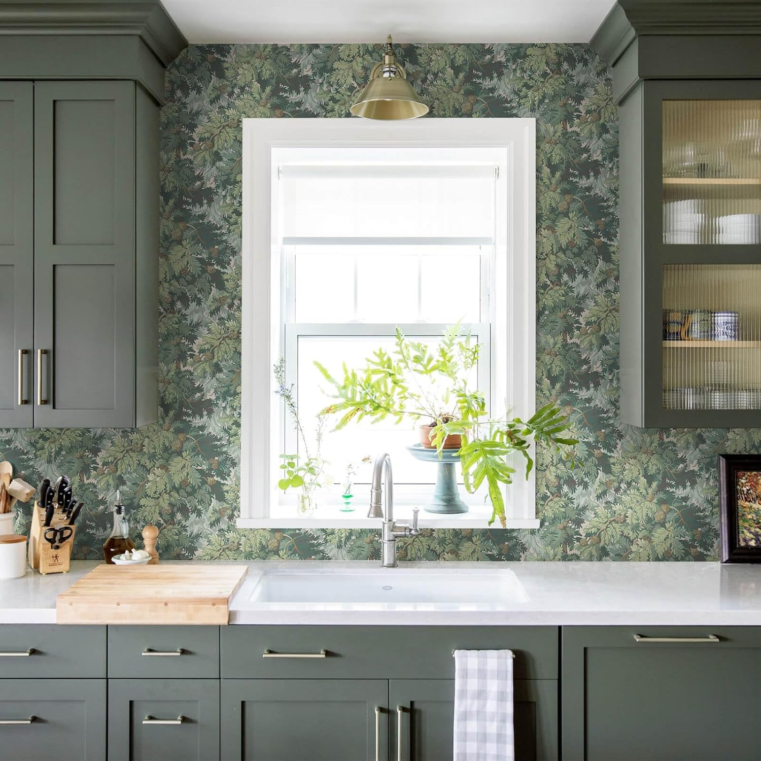 как выглядит Dark Green Peel and Stick Wallpaper Botanical Contact Paper 17.3