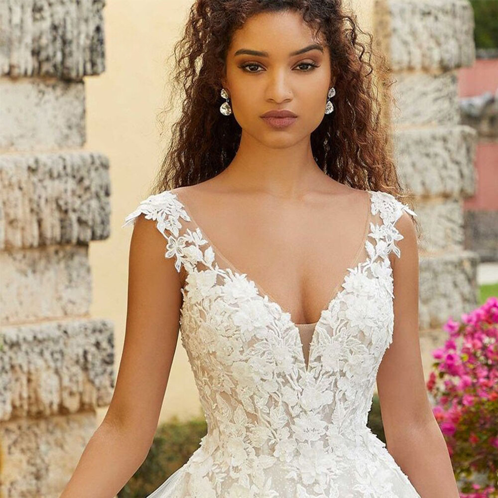 как выглядит Boho Wedding Dresses Floor-length Tulle Applique A-line Backless Bridal Gowns фото