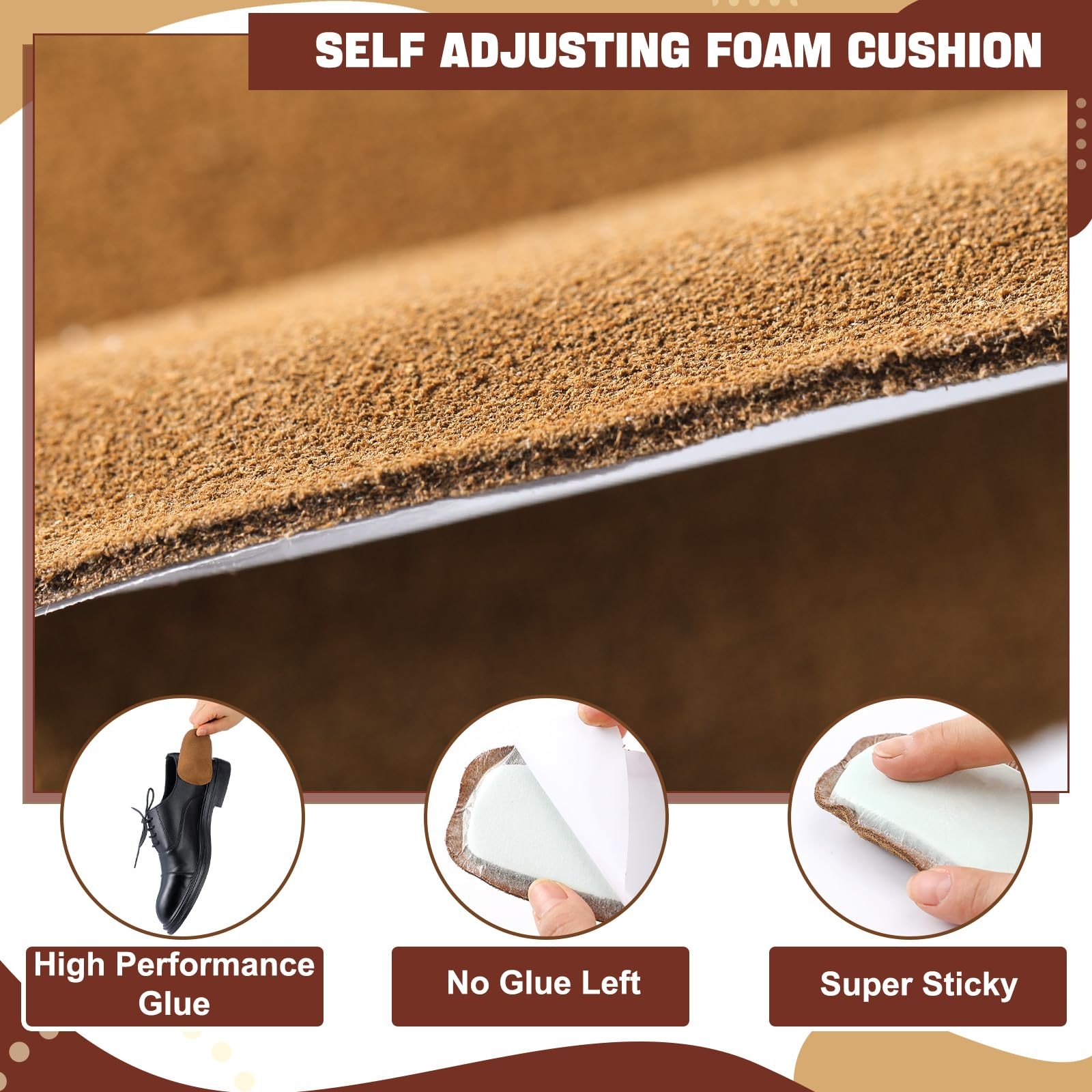 3 Pairs Shoe Tongue Pads Soft Self Adhesive Inserts for Men Women Handmade