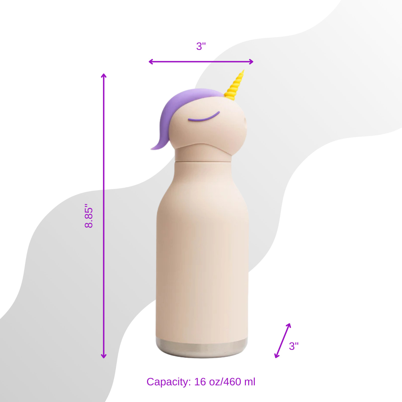Unicorn Asobu Bestie Kids Water Bottle, 16 oz