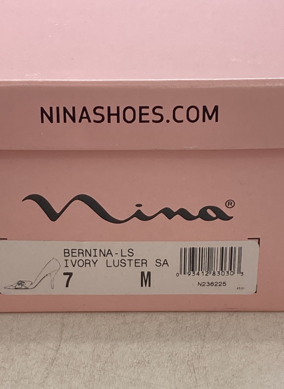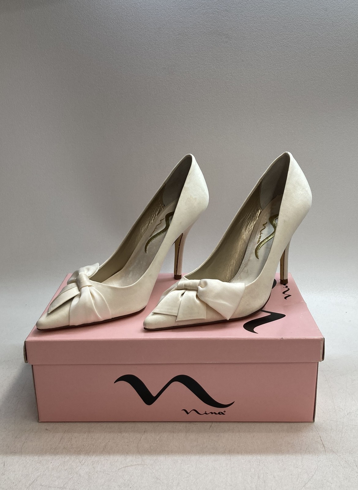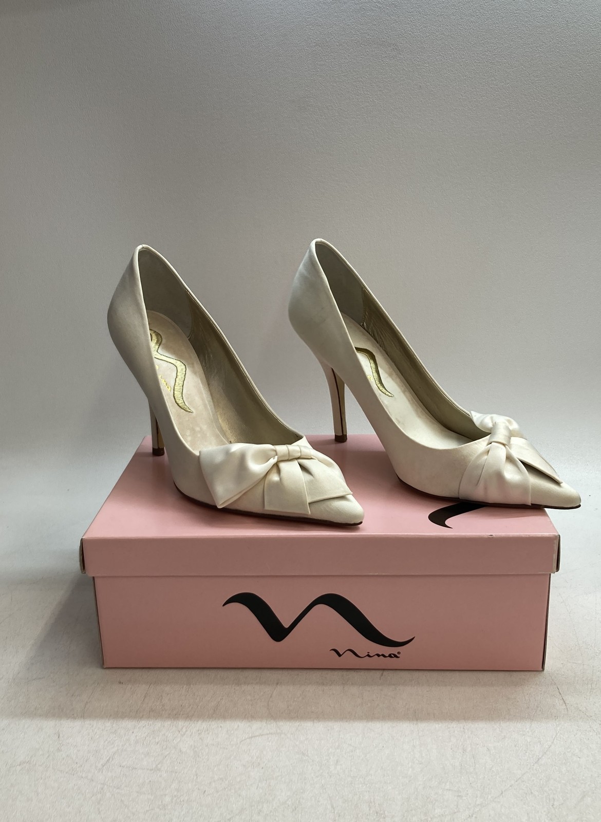 Nina Bernina-LS Ivory Luster Pointed Toe Bow Pumps Heels DS OG All Size 7