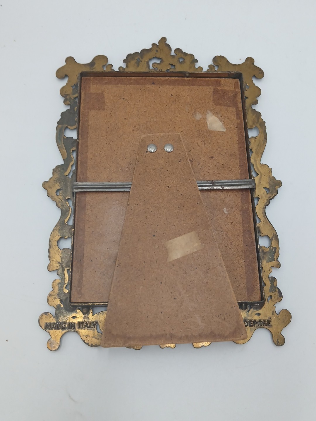VTG Italy Ornate Baroque Scroll Brass Frame Easel Back 3.5x5.25Photo Victorian