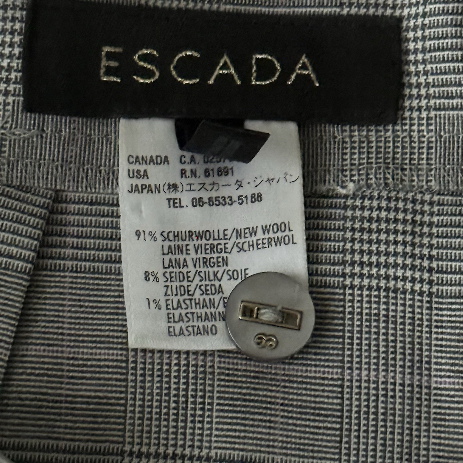как выглядит ESCADA Gray Plaid Virgin Wool Silk Tailored Pants EU 42 US 10 фото