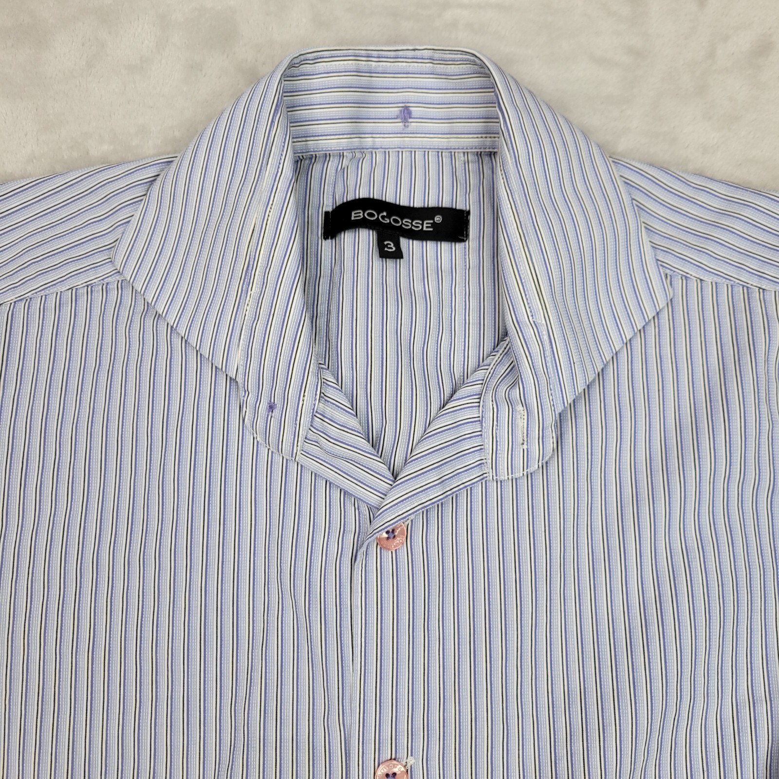 Bogosse Shirt Mens Medium Blue Cotton Stripe Dress Button Up Collar Size 3 Adult