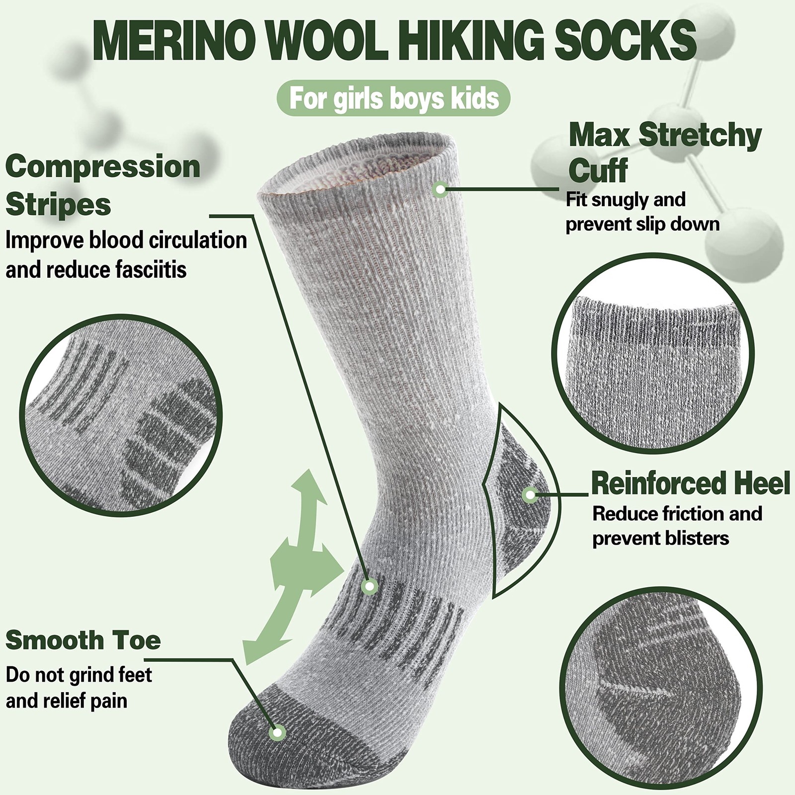 Kids Merino Wool Hiking Socks Girls Boys Winter Thermal Warm Cozy Boot Thick ...